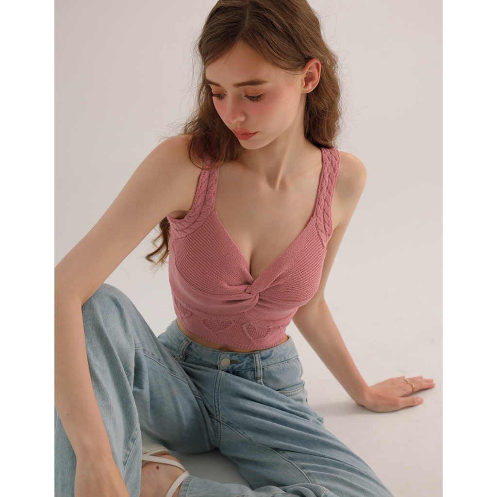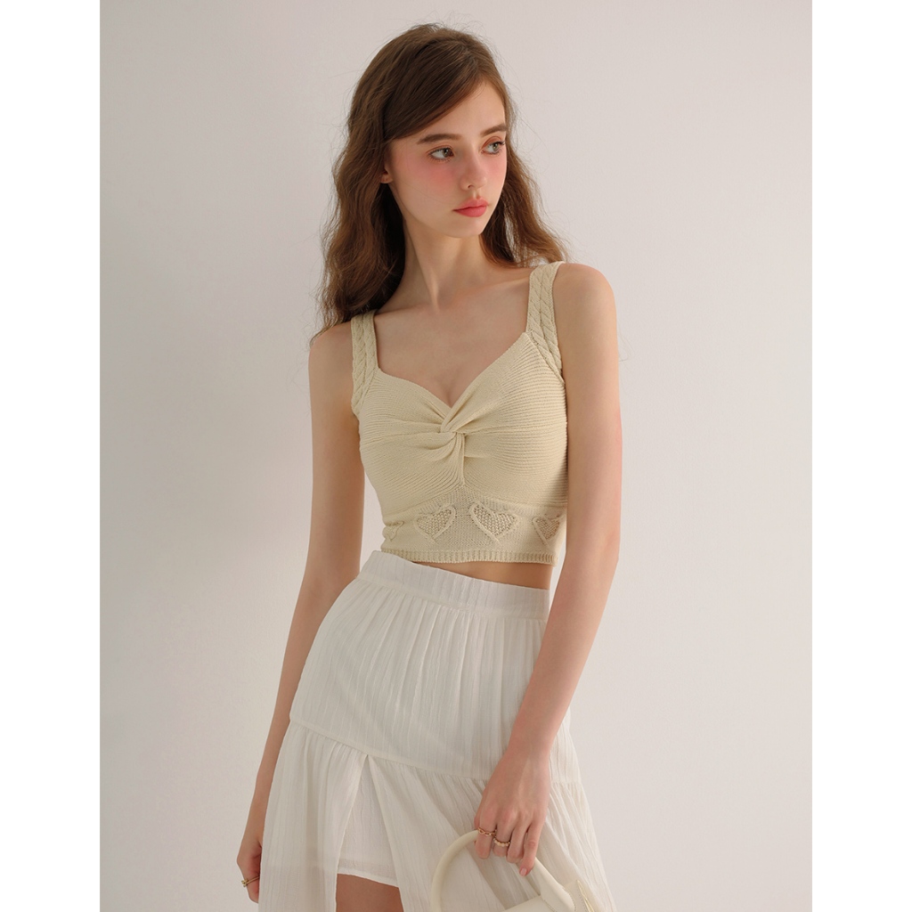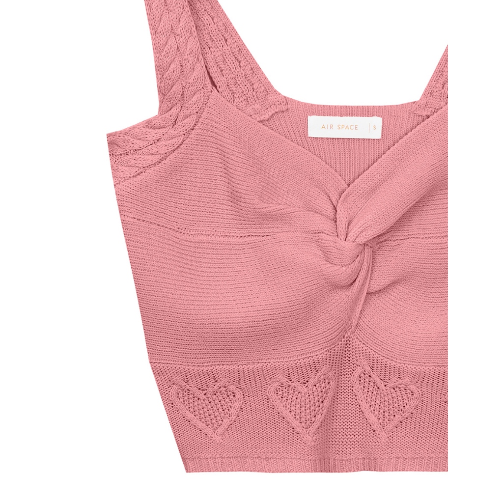 AIR SPACE 愛心織紋扭結細肩針織背心(杏/桃紅) 女裝 現貨杏,S|杏,M|桃紅,S|桃紅,MAIR SPACE