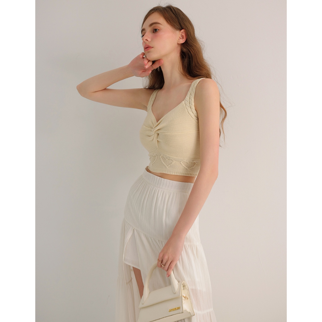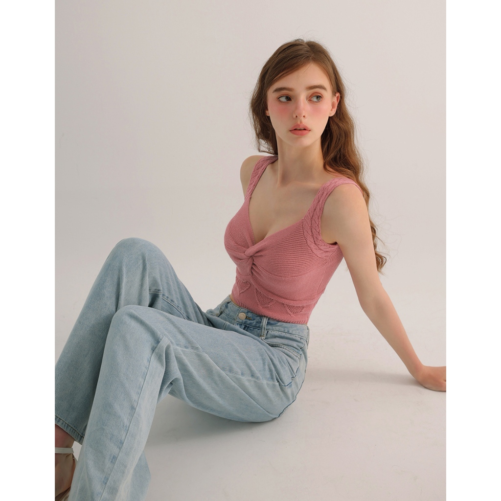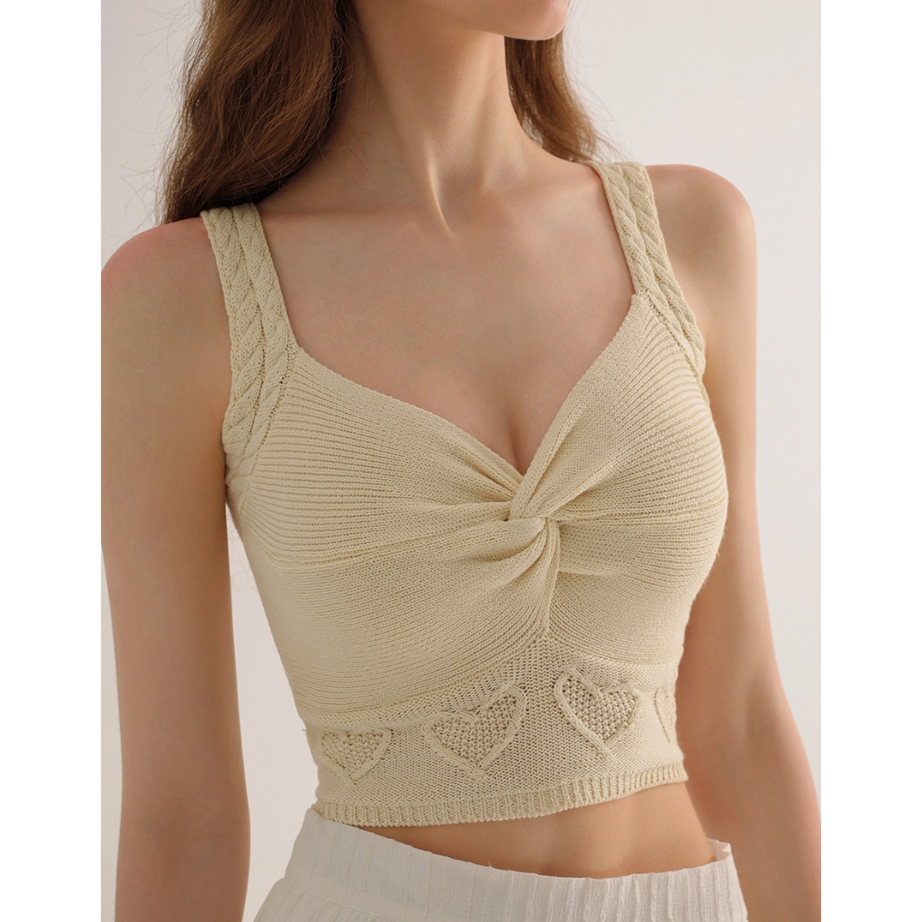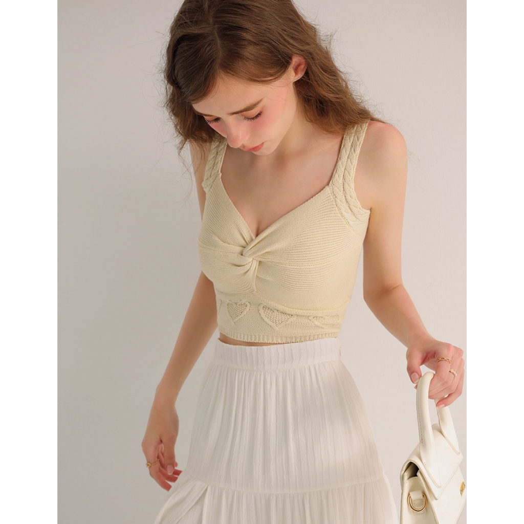 AIR SPACE 愛心織紋扭結細肩針織背心(杏/桃紅) 女裝 現貨杏,S|杏,M|桃紅,S|桃紅,MAIR SPACE