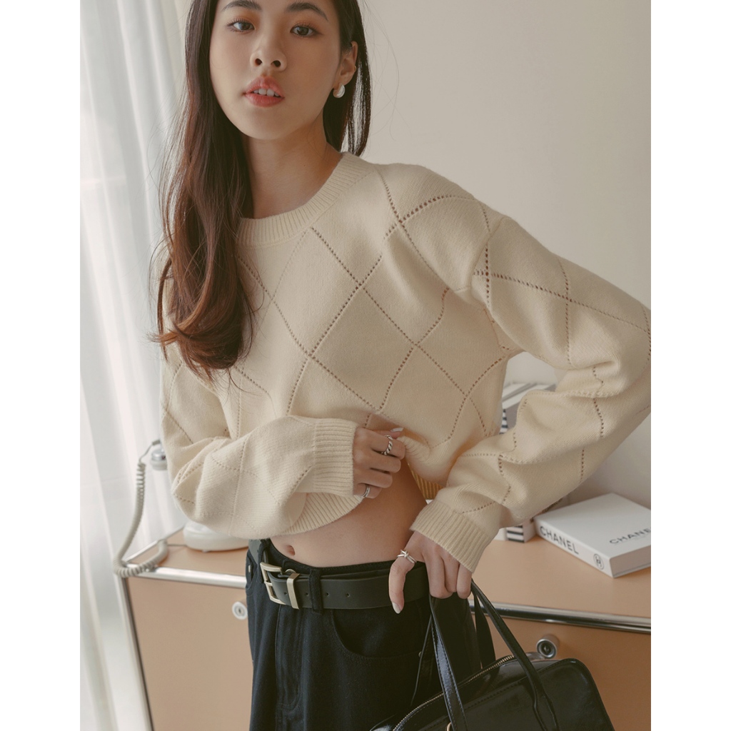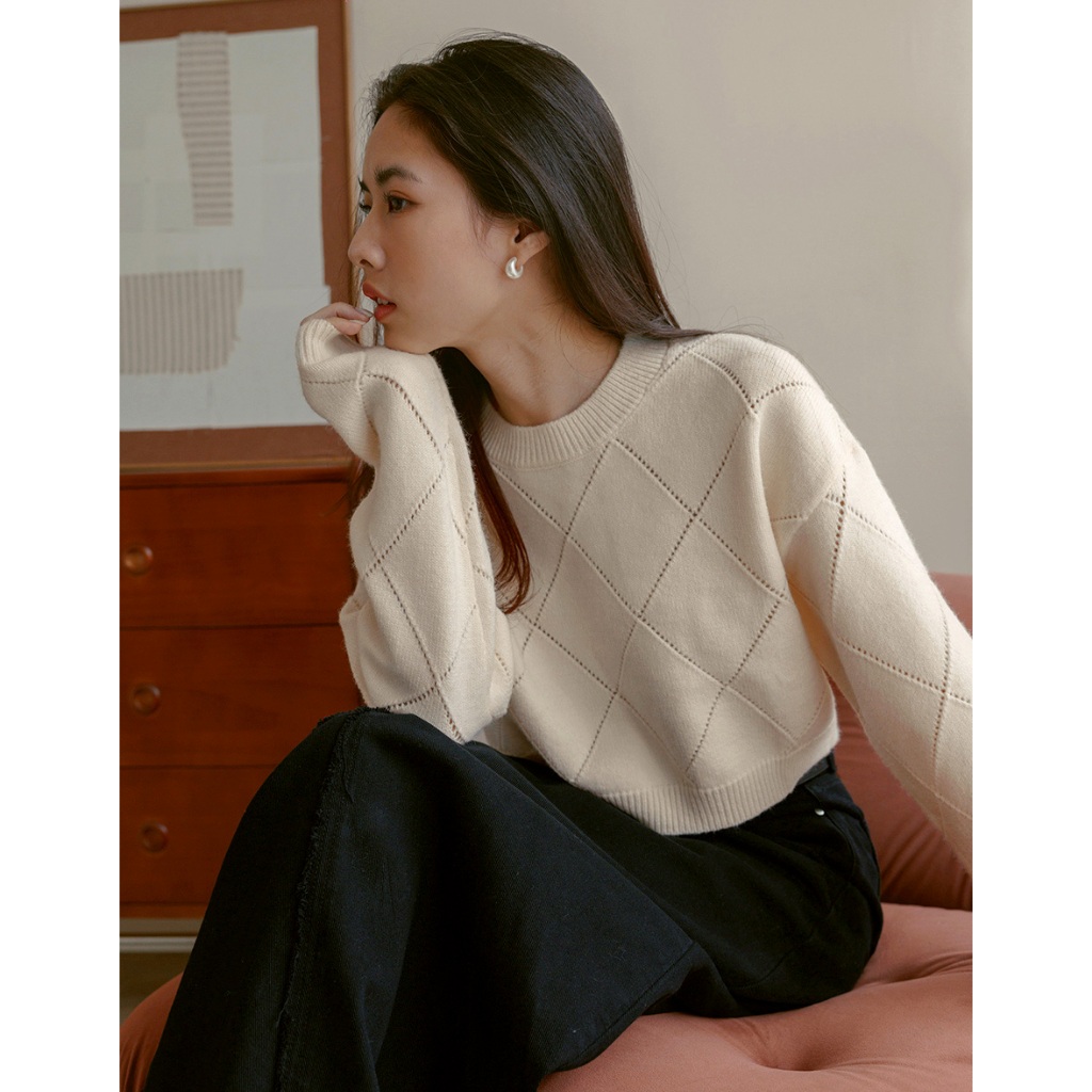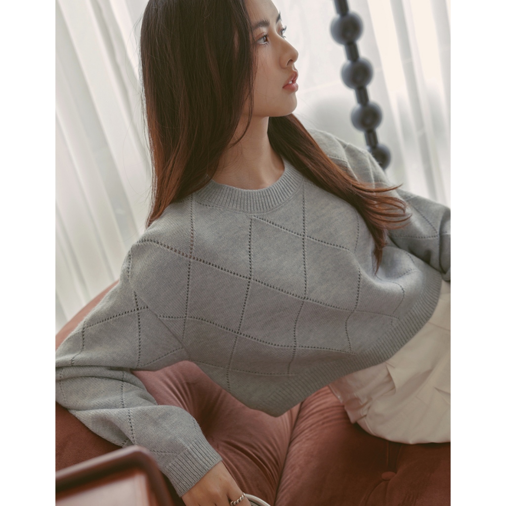 AIR SPACE LADY 純色菱格紋針織毛衣(杏/灰) 女裝 現貨杏,M|灰,S|灰,M|杏,SAIR SPACE