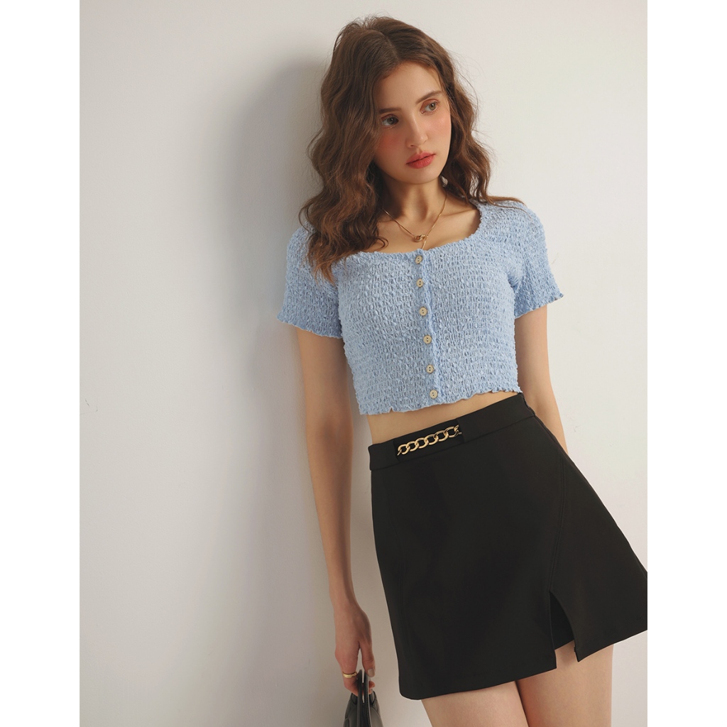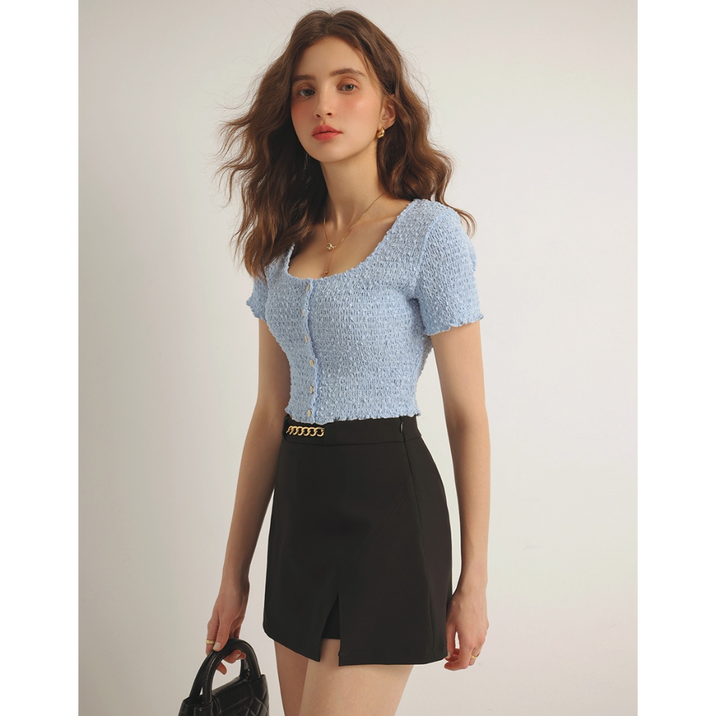 AIR SPACE 金鍊飾開衩短裙(黑/卡其) 女裝 現貨黑,S|黑,M|黑,L|卡其,S|卡其,M|卡其,LAIR SPACE