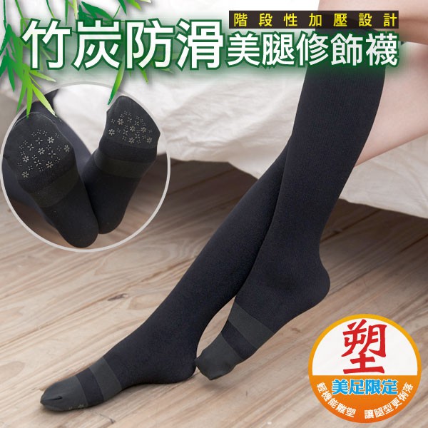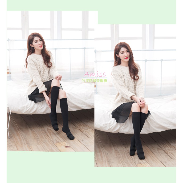 AMISS 竹炭防滑-140D輕雕塑美腿襪 壓力中統襪 加壓中筒襪 膝下襪 A624-1黑色/1雙SocksAmiss全家人的襪子