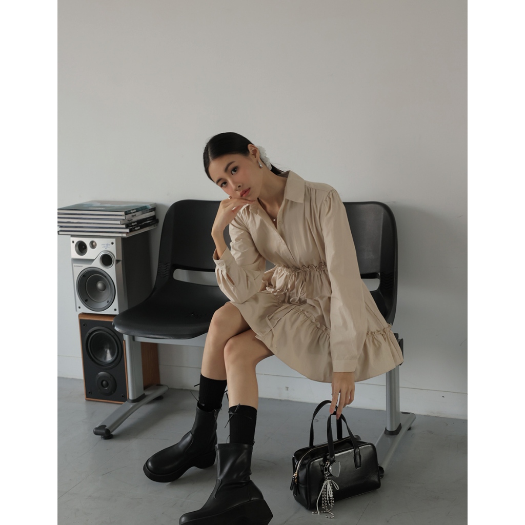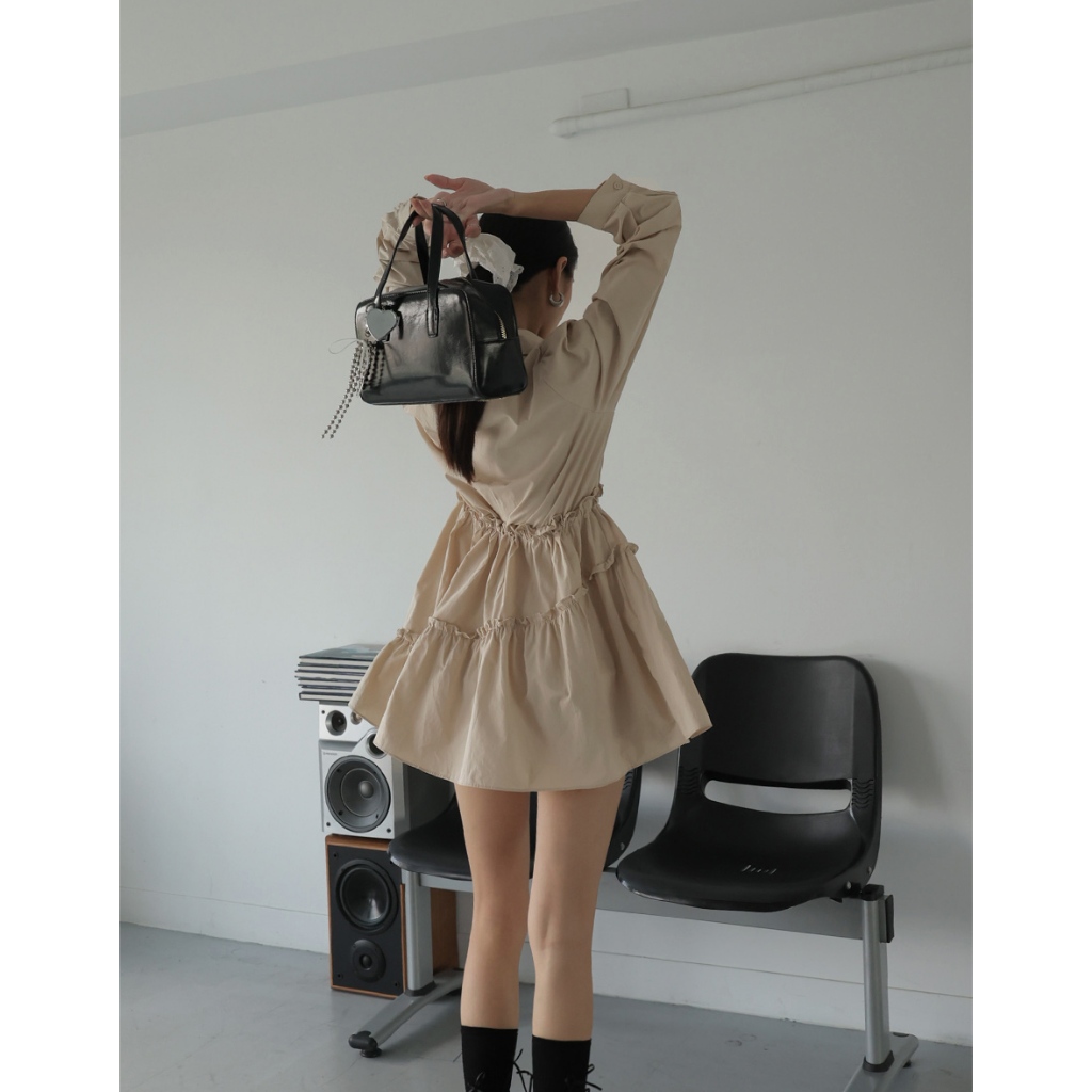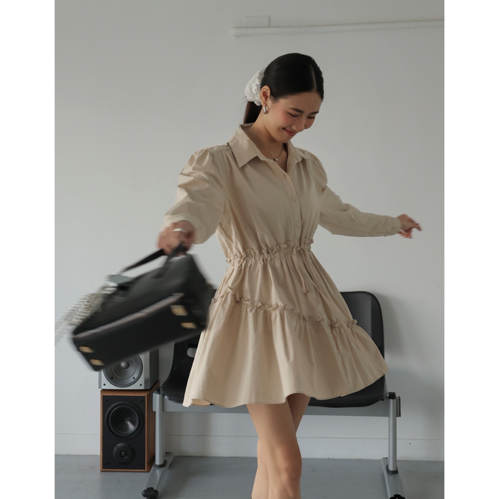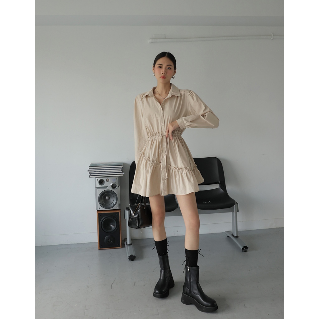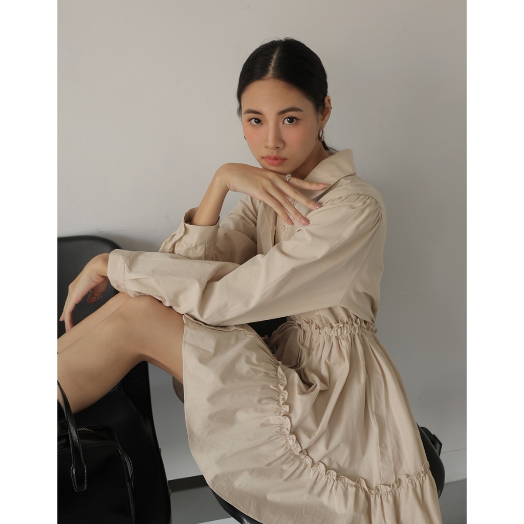 AIR SPACE LADY 抽繩襯衫蛋糕短洋裝(卡其/淺藍) 女裝 現貨卡其,S|卡其,M|卡其,L|淺藍,S|淺藍,M|淺藍,LAIR SPACE