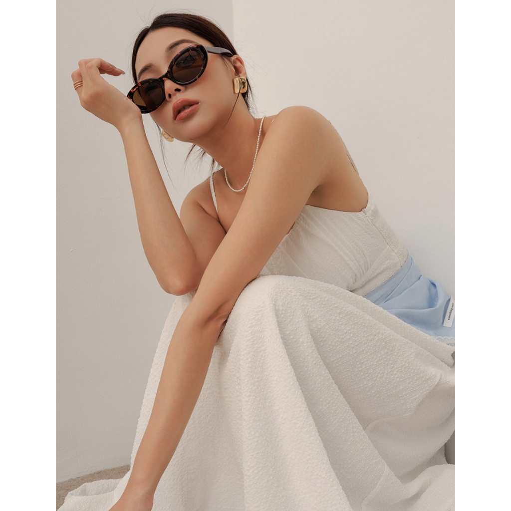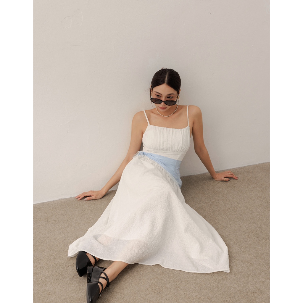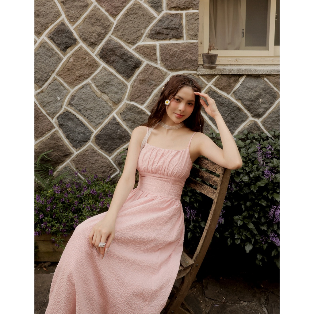 AIR SPACE LADY 格紋泡泡紗收腰細肩帶長洋裝(附胸墊)(白/粉紅) 女裝 現貨白,S|白,M|白,L|粉紅,S|粉紅,M|粉紅,LAIR SPACE