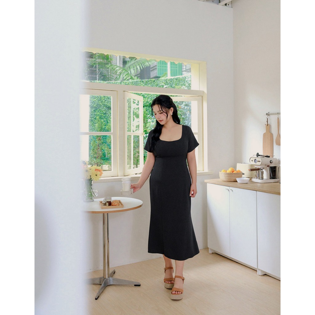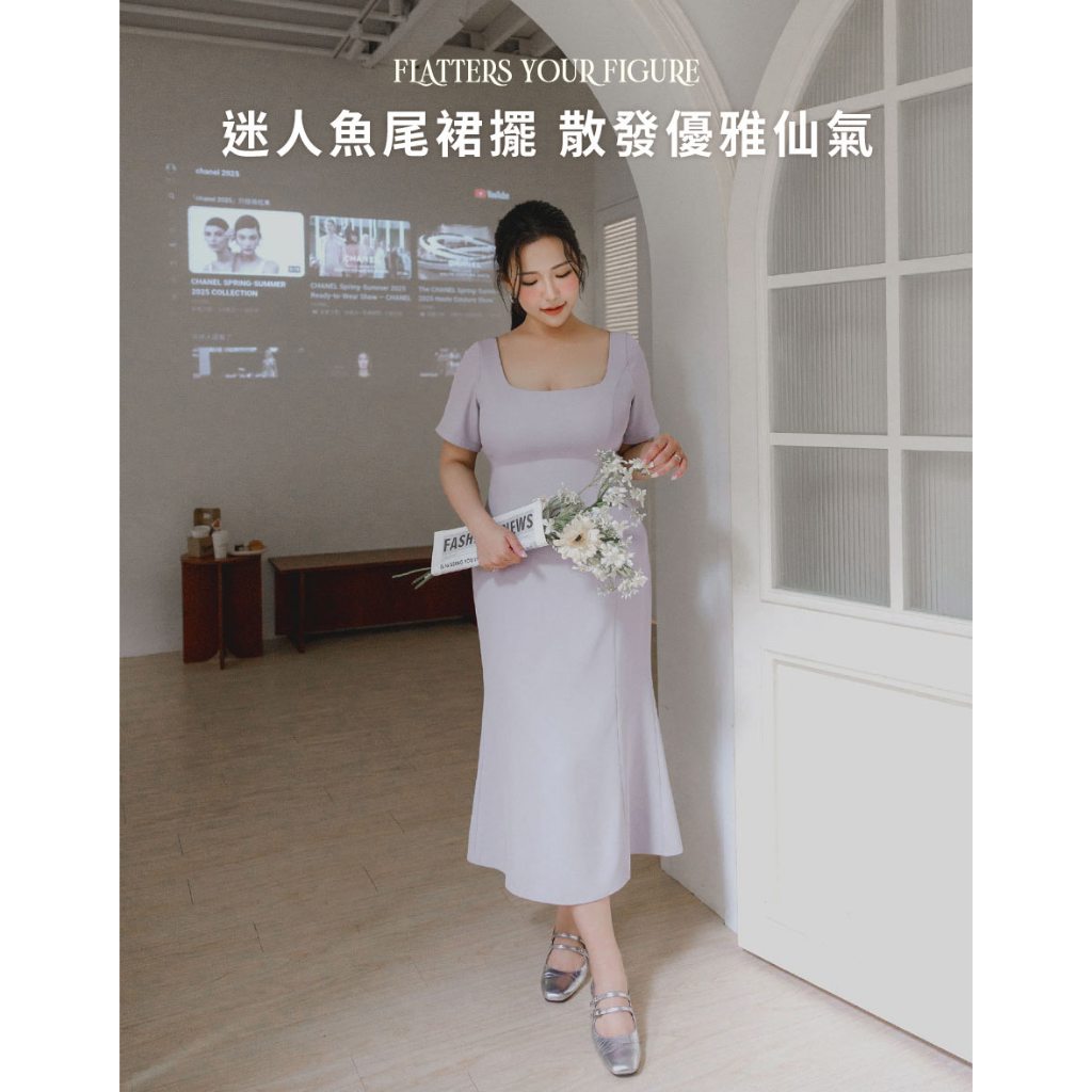 AIR SPACE PLUS 純欲曲線BRA西裝短袖長洋裝(黑/灰) 女裝 現貨 大尺碼 中大尺碼
