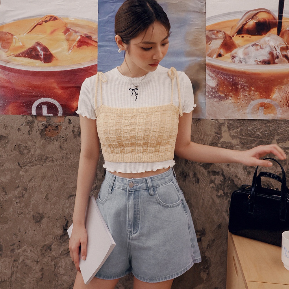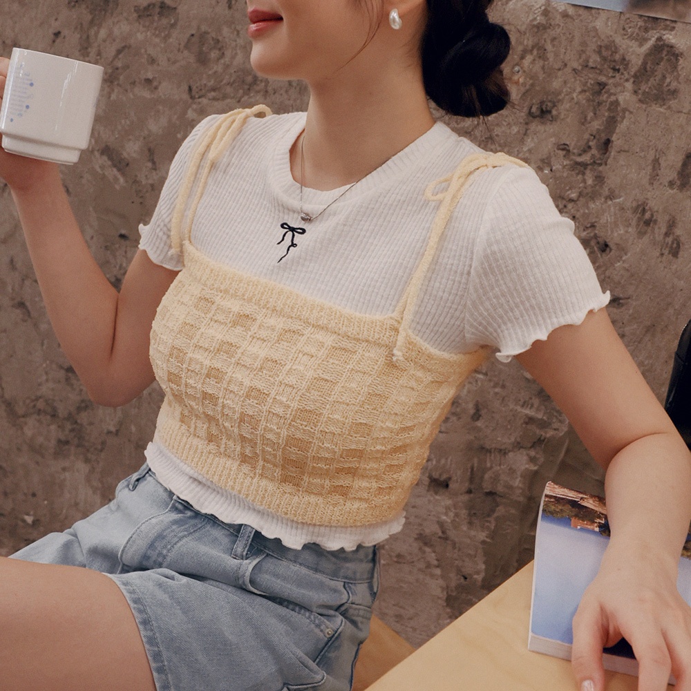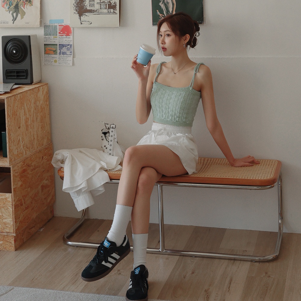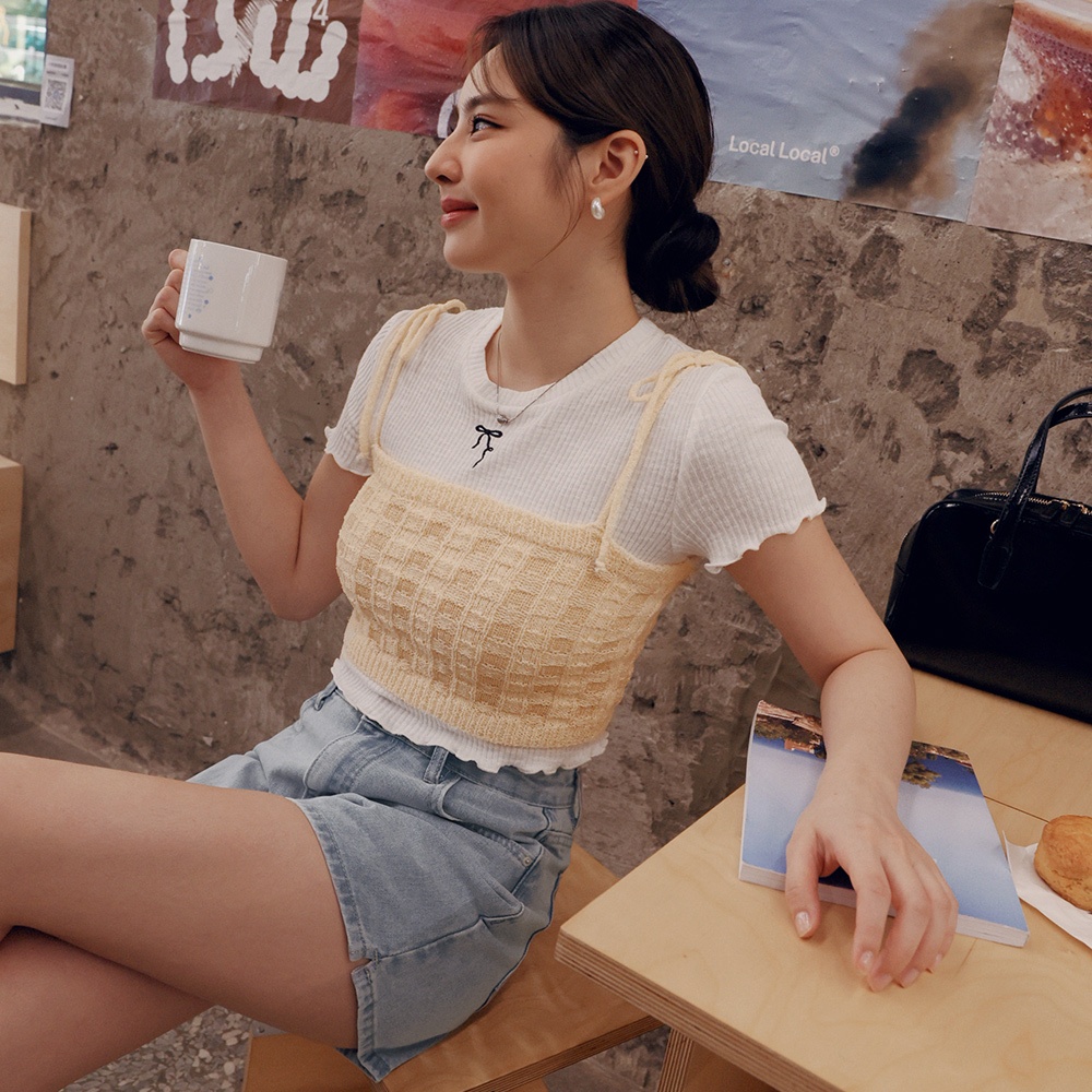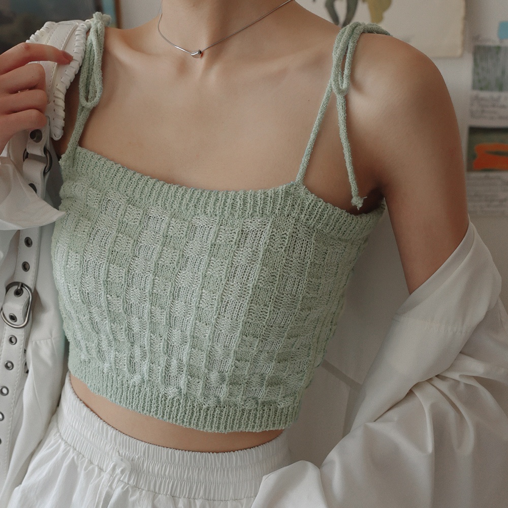 AIR SPACE LADY 雙色針織綁帶背心(杏/藍綠) 女裝 現貨杏,S|杏,M|藍綠,S|藍綠,MTanks & CamisolesAIR SPACE