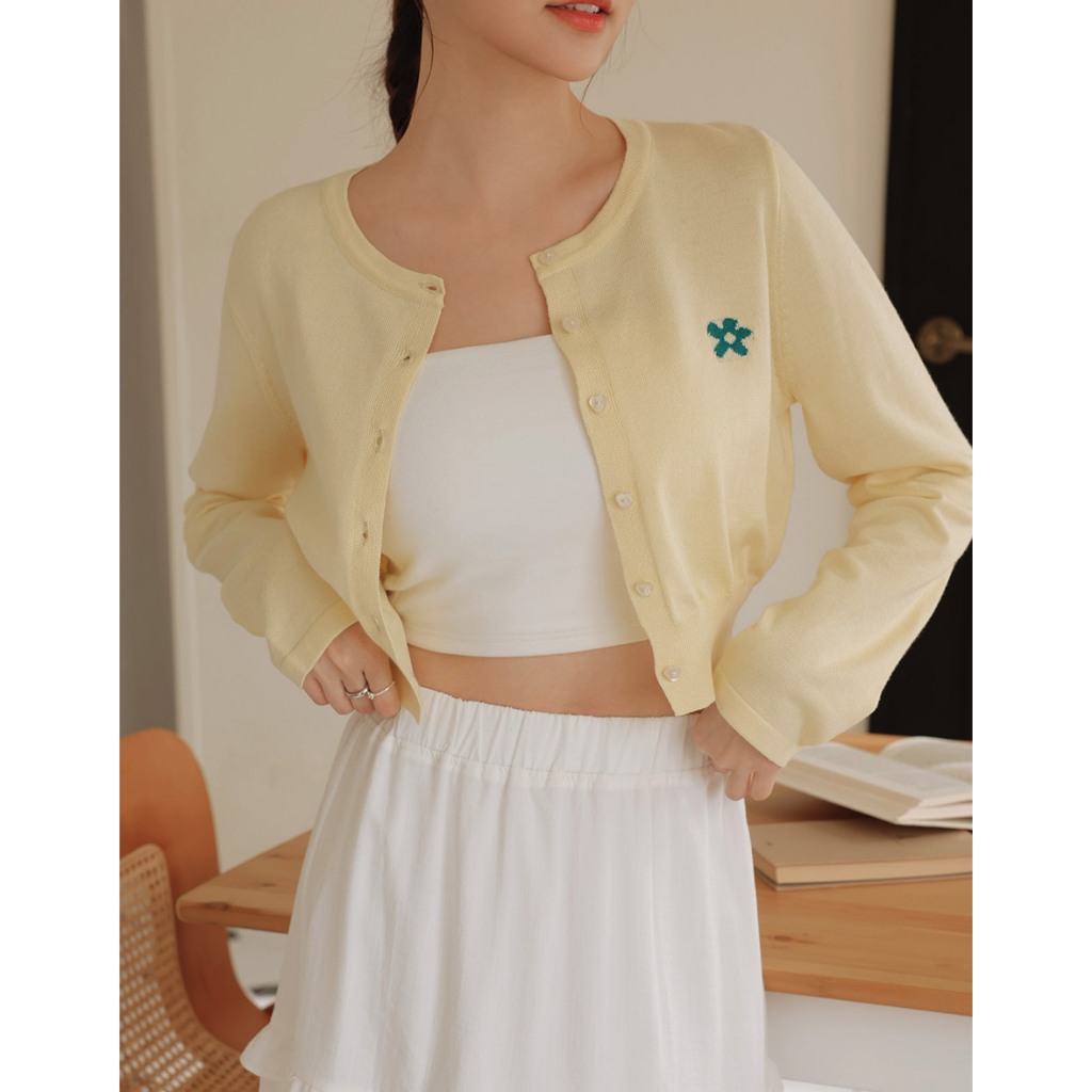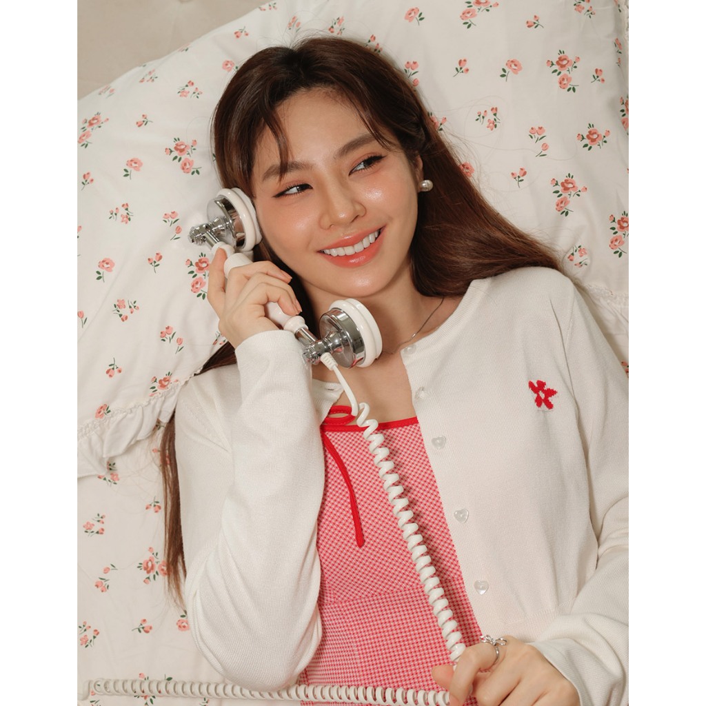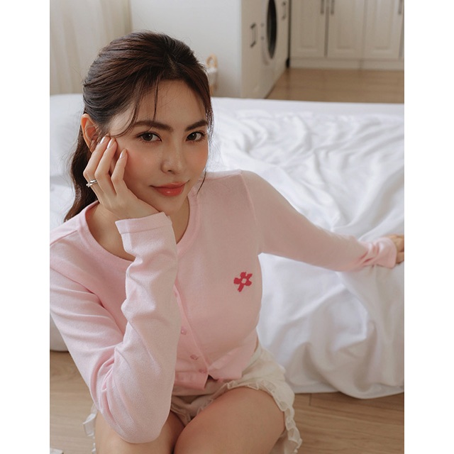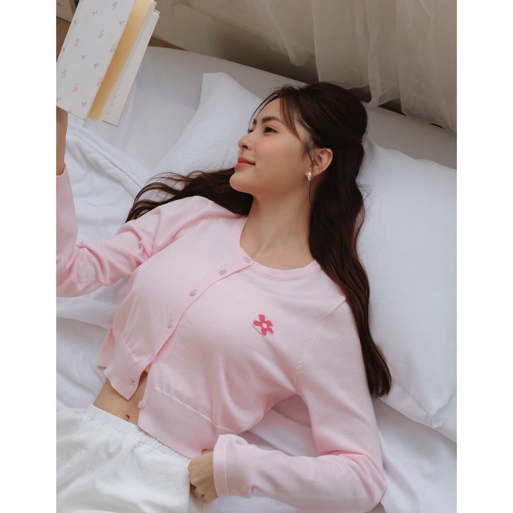 AIR SPACE LADY 小花圖案愛心扣開襟針織衫(白/深藍//黃/粉紅) 女裝 現貨白,S|白,M|深藍,S|深藍,M|黃,S|黃,M|粉紅,S|粉紅,MAIR SPACE