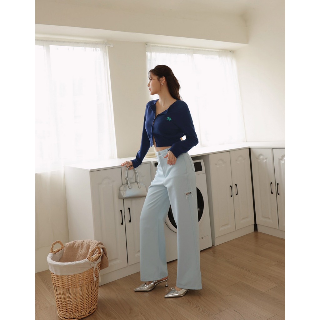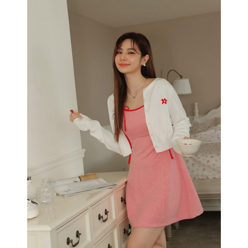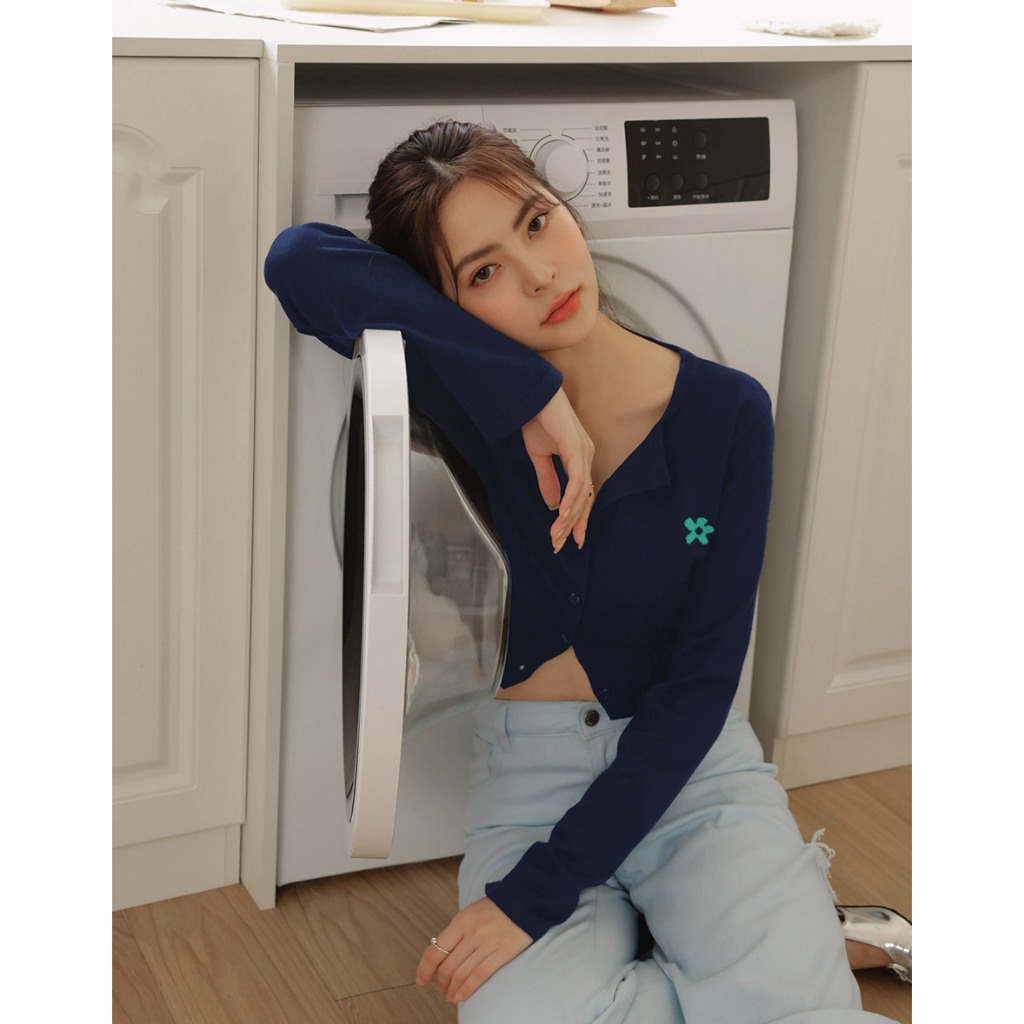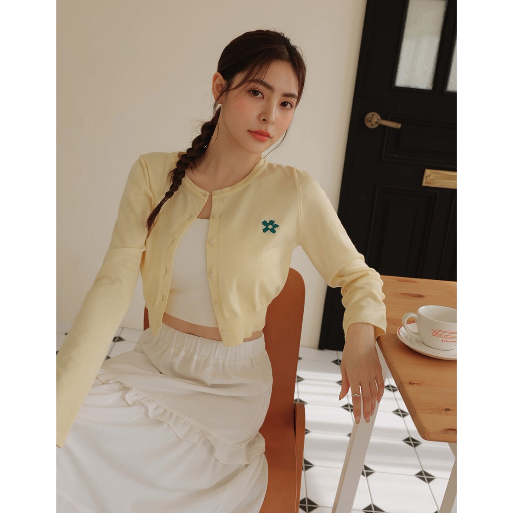 AIR SPACE LADY 小花圖案愛心扣開襟針織衫(白/深藍//黃/粉紅) 女裝 現貨白,S|白,M|深藍,S|深藍,M|黃,S|黃,M|粉紅,S|粉紅,MAIR SPACE