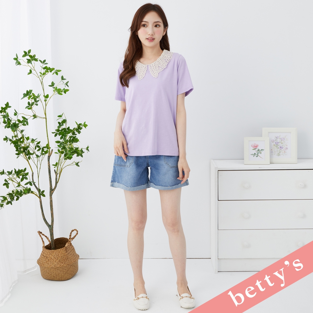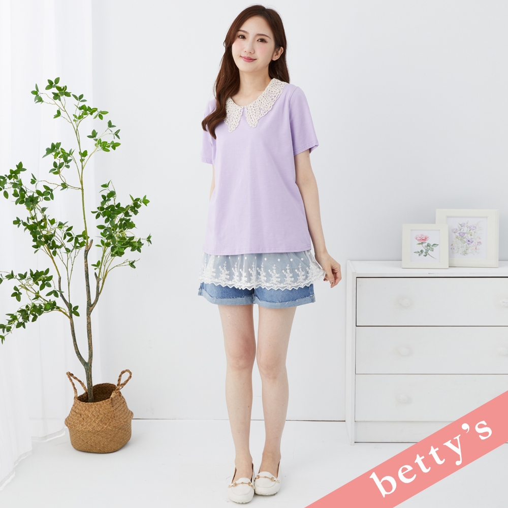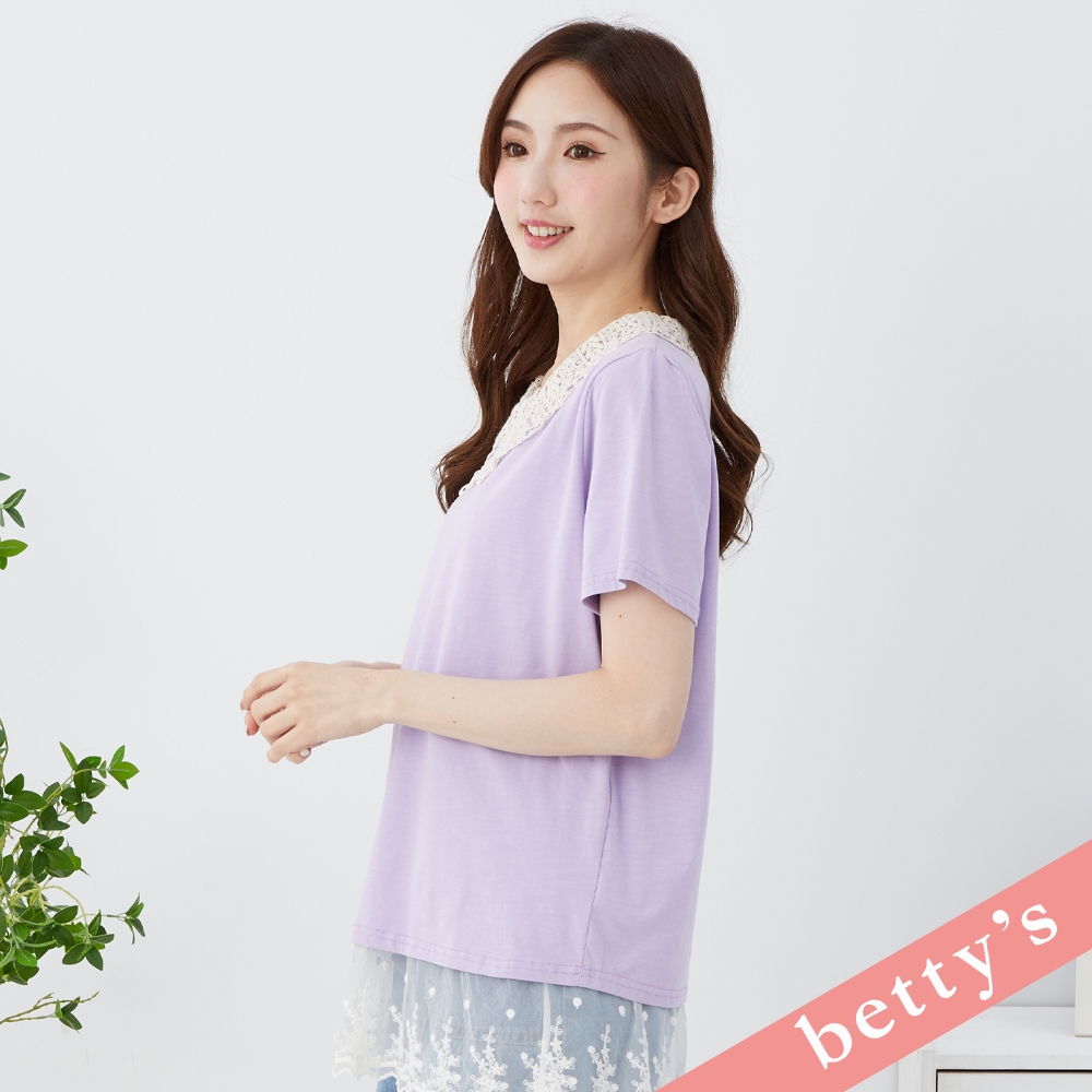 betty’s貝蒂思(31)蕾絲領子百搭素色T-shirt(紫色)紫色,M|紫色,L|紫色,XLT-shirtsbetty’s貝蒂思