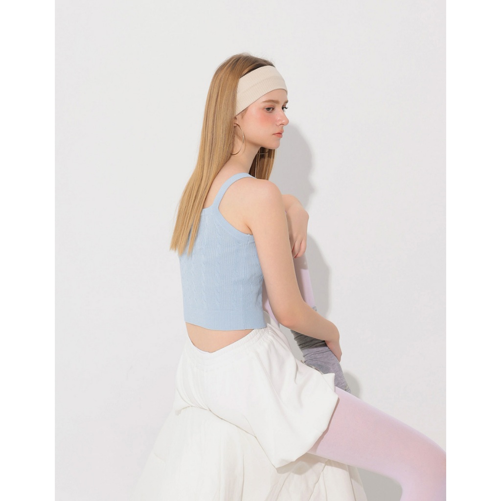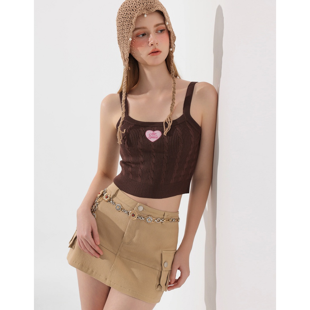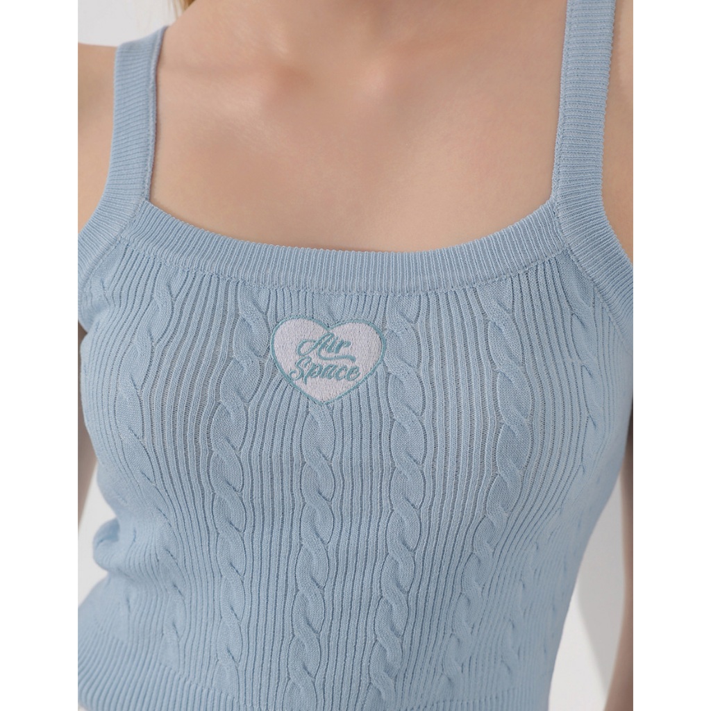 AIR SPACE 愛心刺繡貼麻花細肩帶針織背心(藍/咖啡) 女裝 現貨