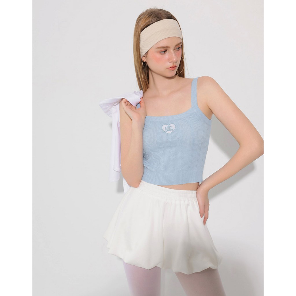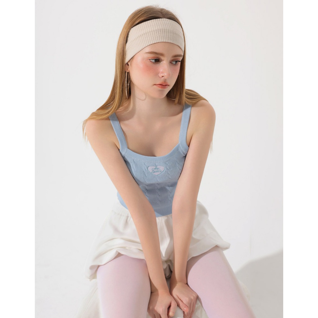 AIR SPACE 愛心刺繡貼麻花細肩帶針織背心(藍/咖啡) 女裝 現貨藍,S|藍,M|咖啡,S|咖啡,MTanks & CamisolesAIR SPACE