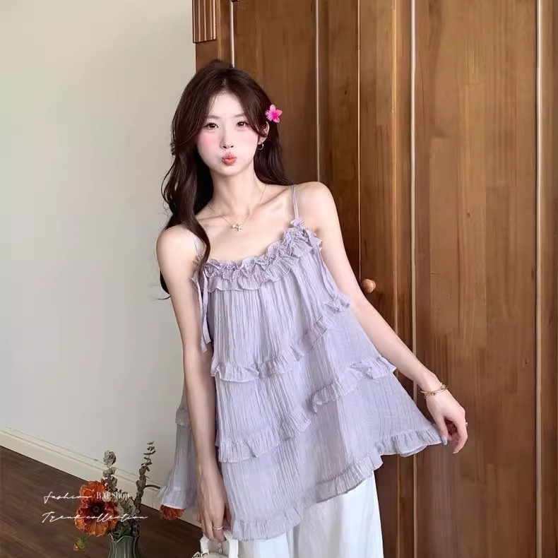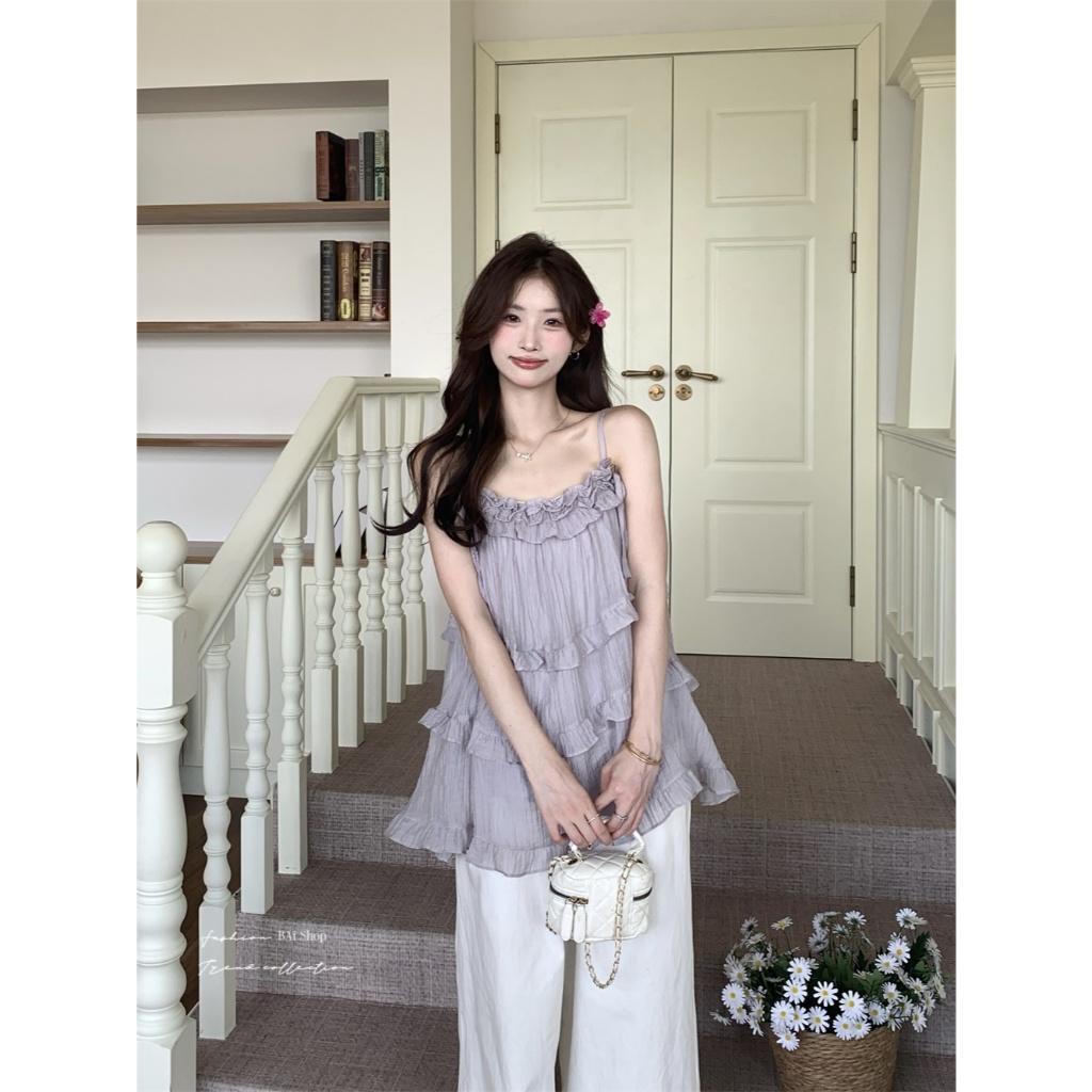 BAi白媽媽 壓折拼接背心/可調肩帶 × 內裡舒適寬鬆版-台灣現貨 隔日到貨【350454】煙灰紫(10)Tanks & CamisolesBAi白媽媽 品牌旗艦店