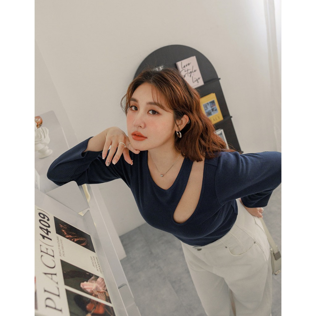 AIR SPACE PLUS 鏤空造型羅紋上衣(附胸墊)(黑/深藍) 女裝 現貨 大尺碼 中大尺碼黑,XL|黑,2XL|黑,3XL|深藍,XL|深藍,2XL|深藍,3XLOthersAIR SPACE