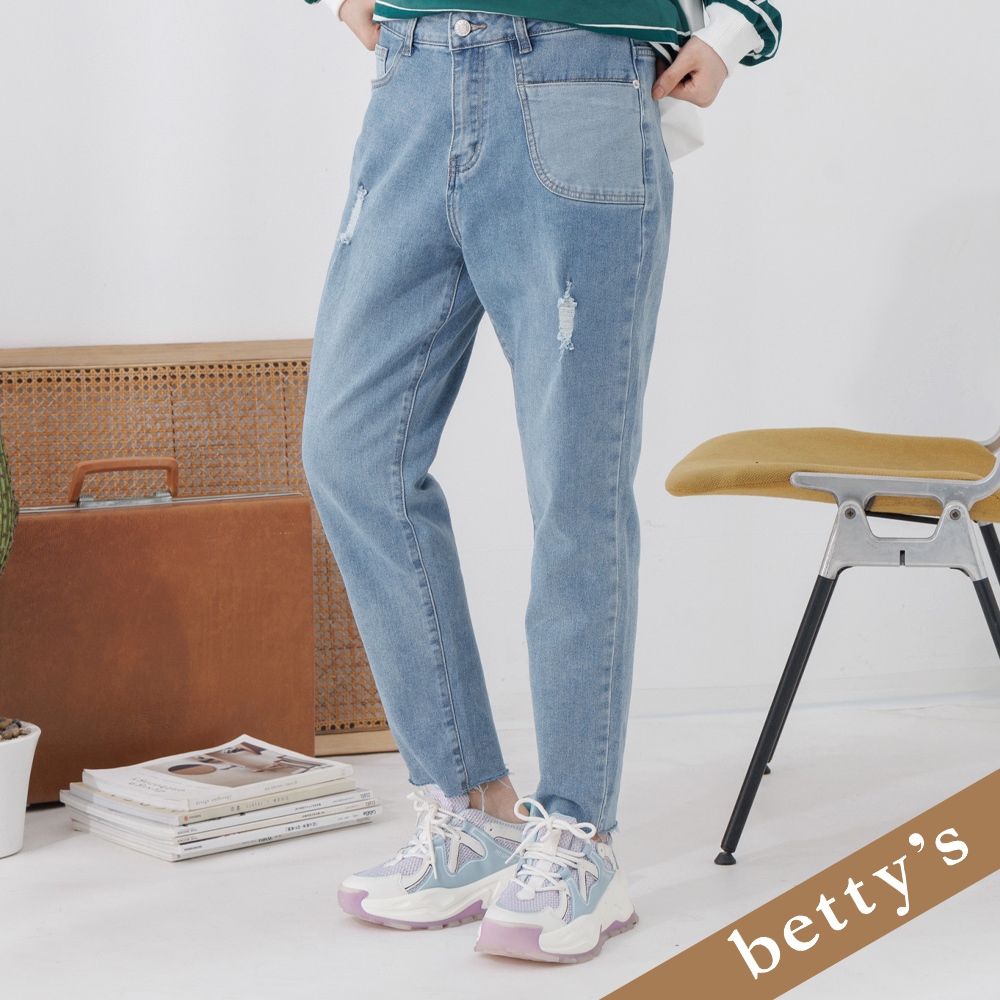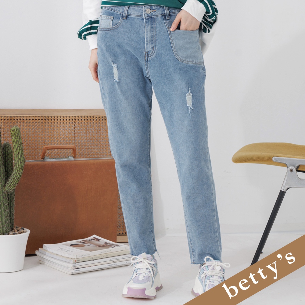 betty’s貝蒂思(25)口袋拼色鬚邊男友風牛仔褲(淺藍色)淺藍色,M|淺藍色,L|淺藍色,XL|淺藍色,2XL|淺藍色,3Lbetty’s貝蒂思