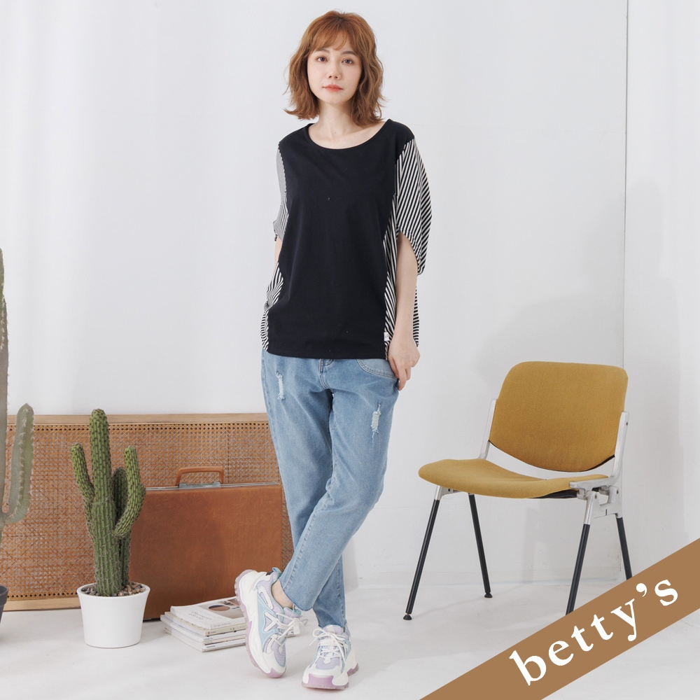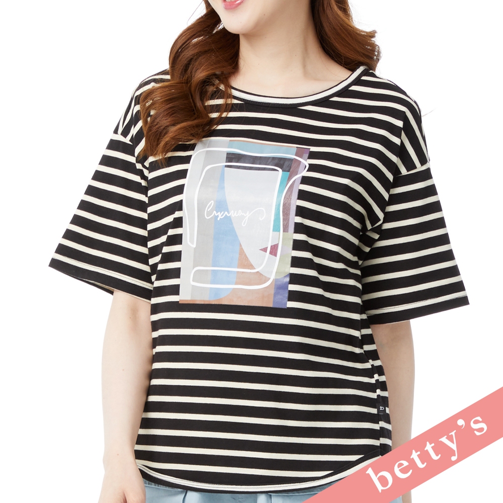 betty’s貝蒂思(31)細條紋抽象印花短袖T-shirt(黑色)黑色,S|黑色,M|黑色,L|黑色,XLT-shirtsbetty’s貝蒂思