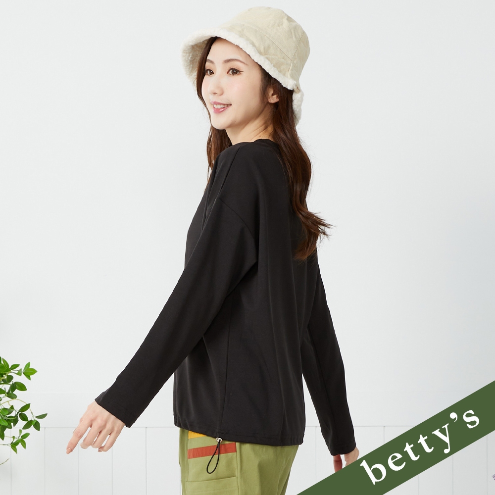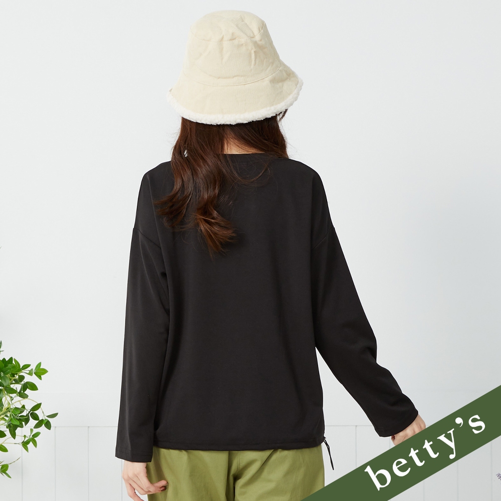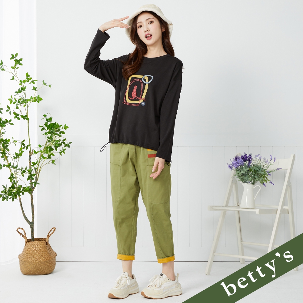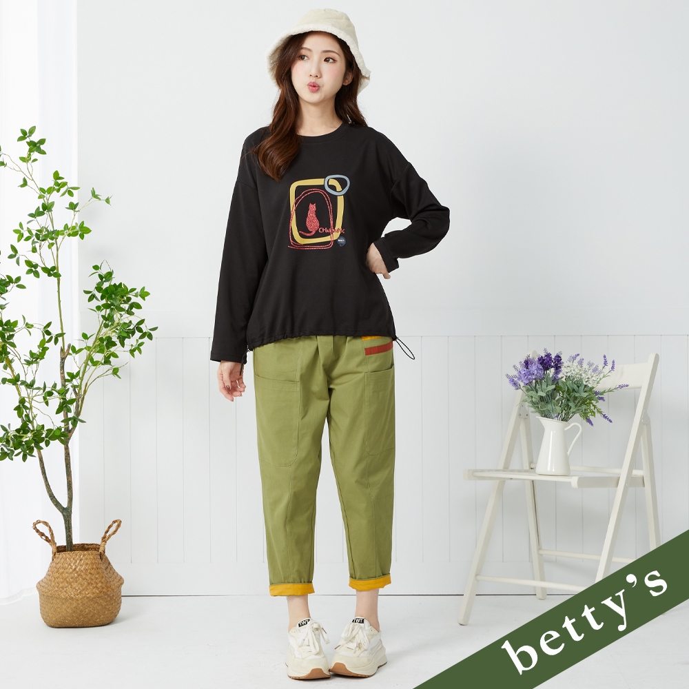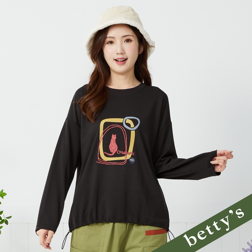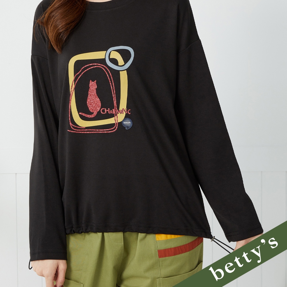 betty’s貝蒂思(35)亮粉貓咪印花抽繩長袖T-shirt(黑色)黑色,FT-shirtsbetty’s貝蒂思