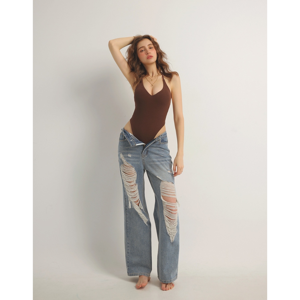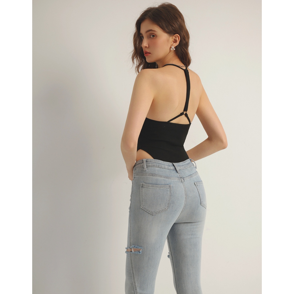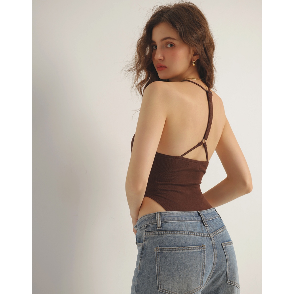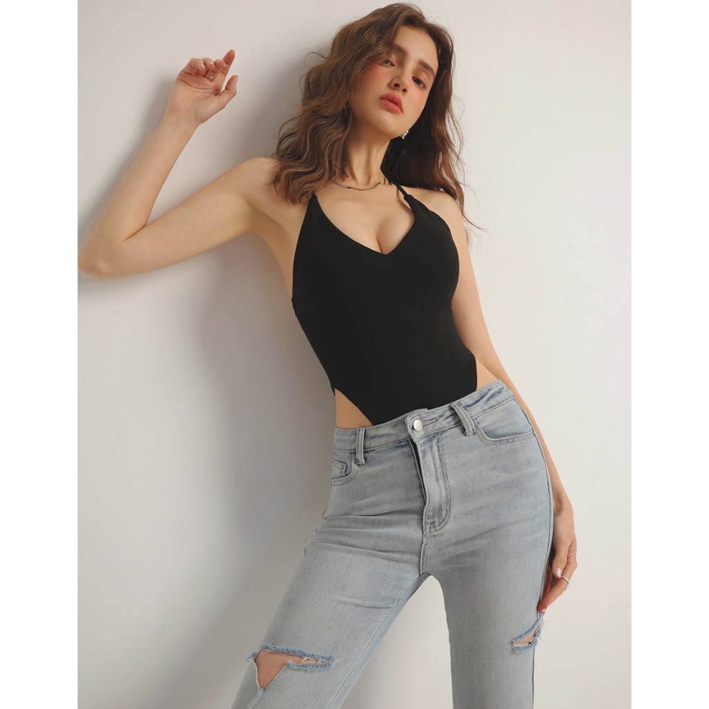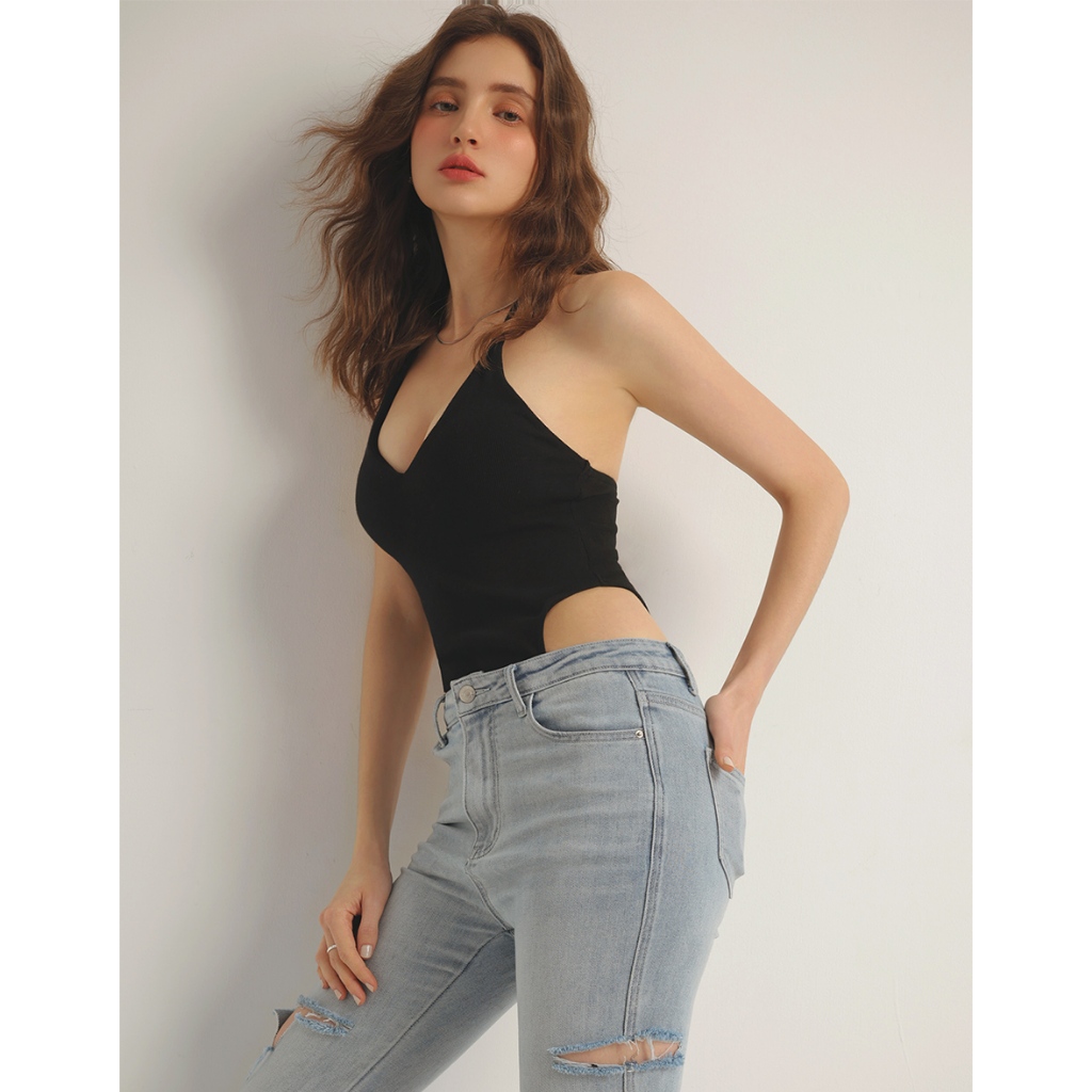 AIR SPACE V領繞頸側鏤空連身衣(附胸墊)(黑/咖啡) 女裝 現貨黑,S|黑,M|黑,L|咖啡,S|咖啡,M|咖啡,LBodysuitsAIR SPACE