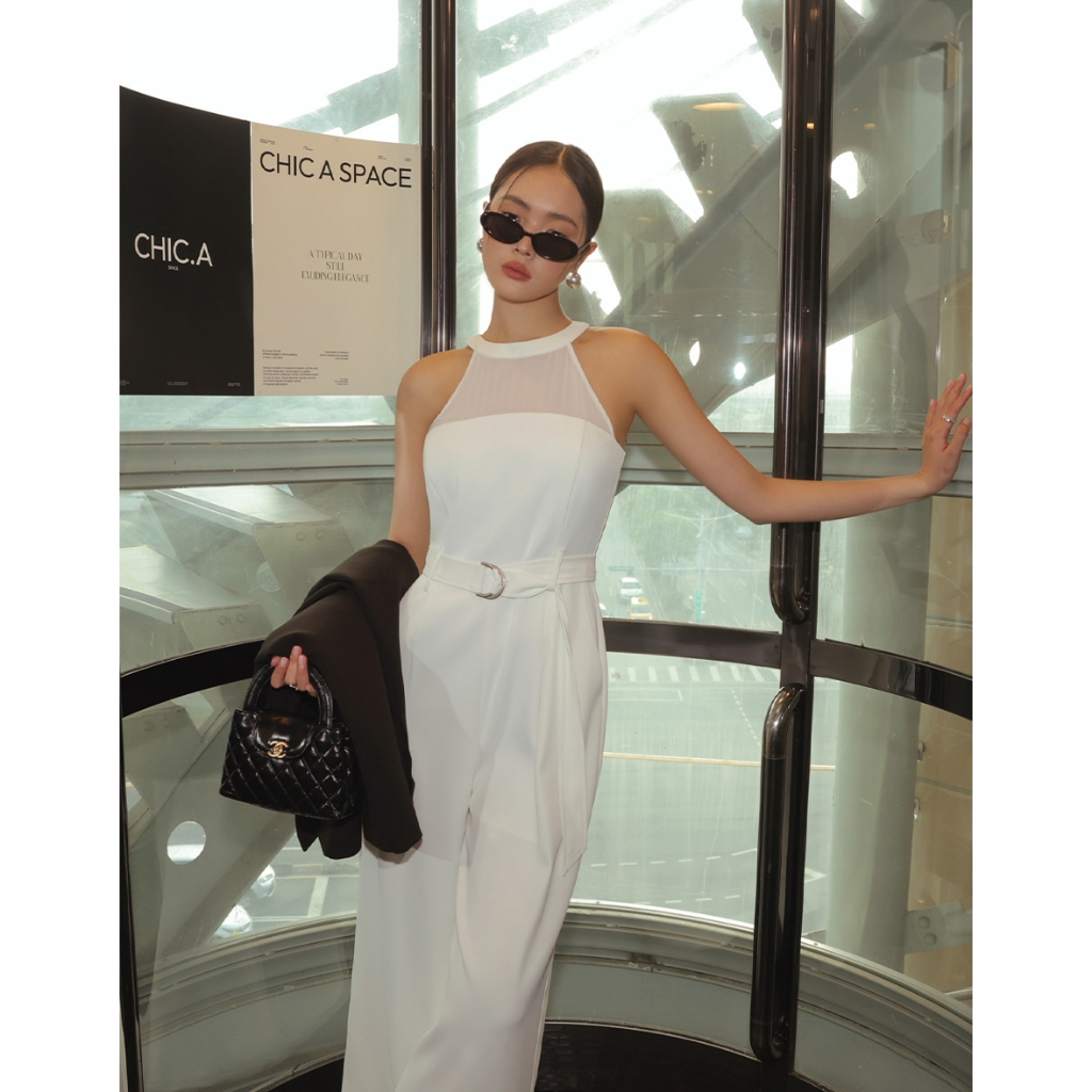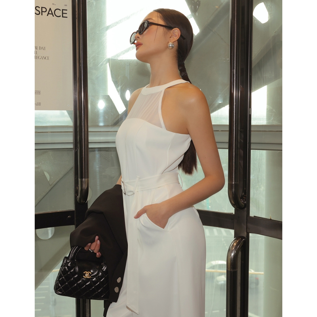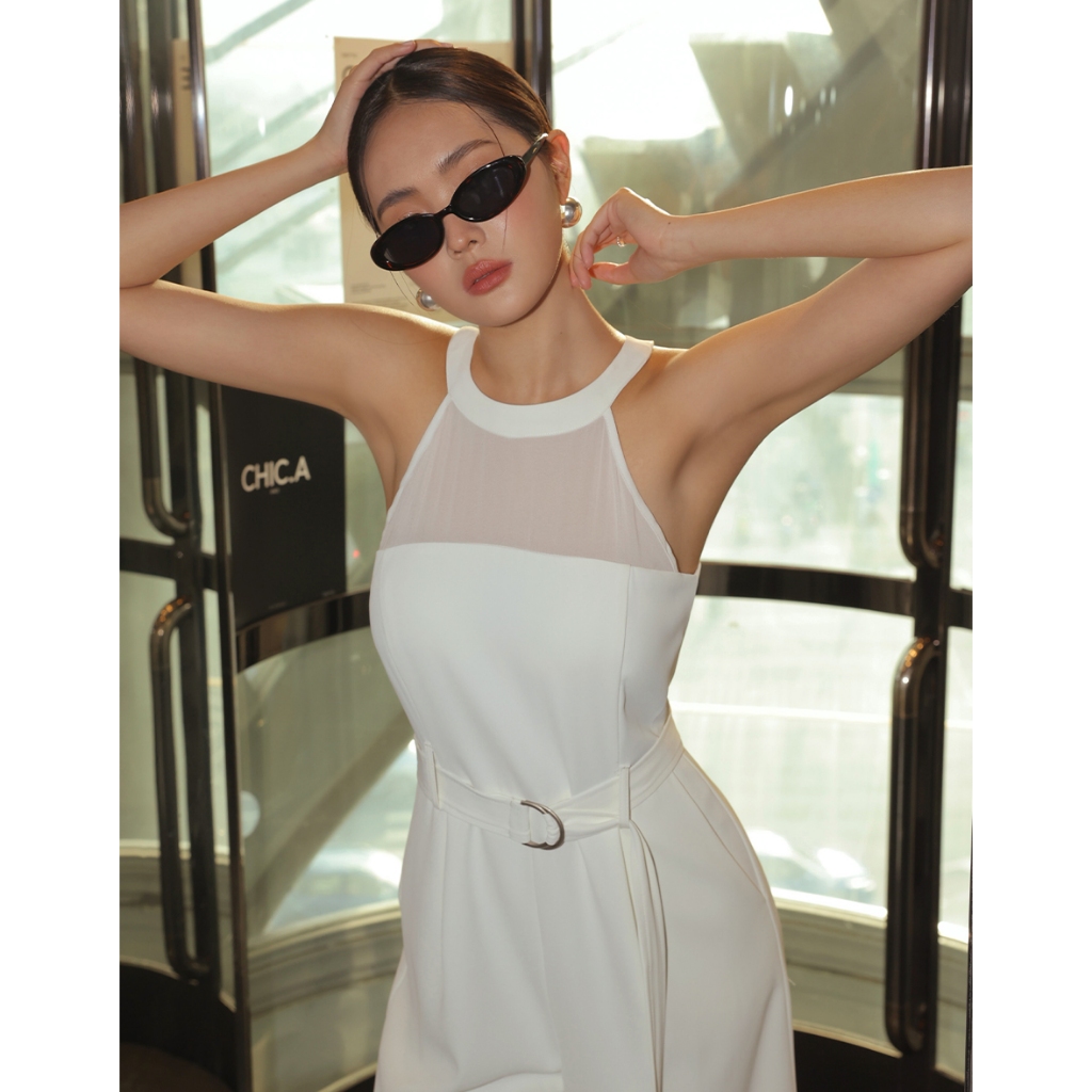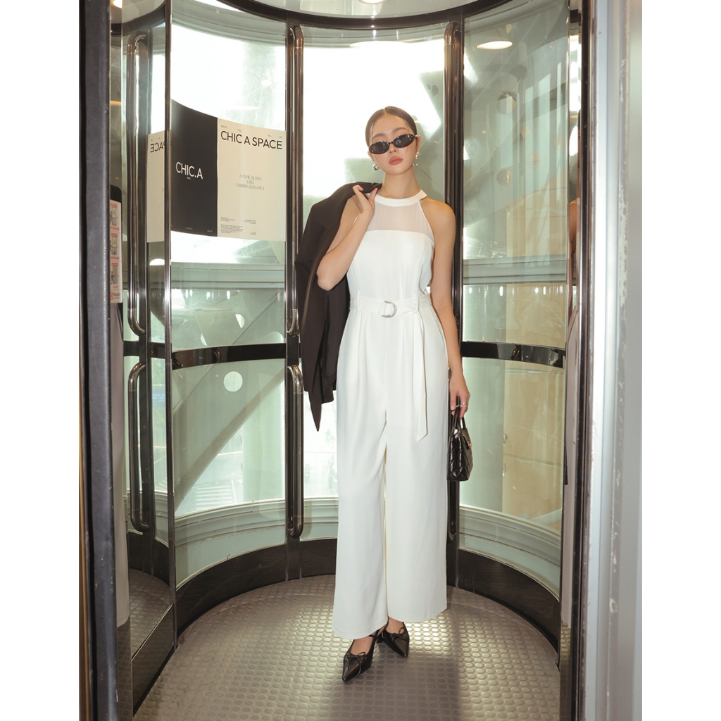 CHIC A SPACE 透肌拼接繞頸連身褲(附胸墊及腰帶)(黑/白) 女裝 現貨黑,S|黑,M|黑,L|白,S|白,M|白,LJumpsuitsAIR SPACE