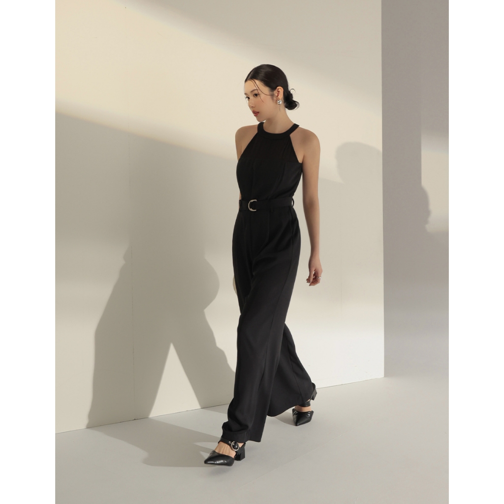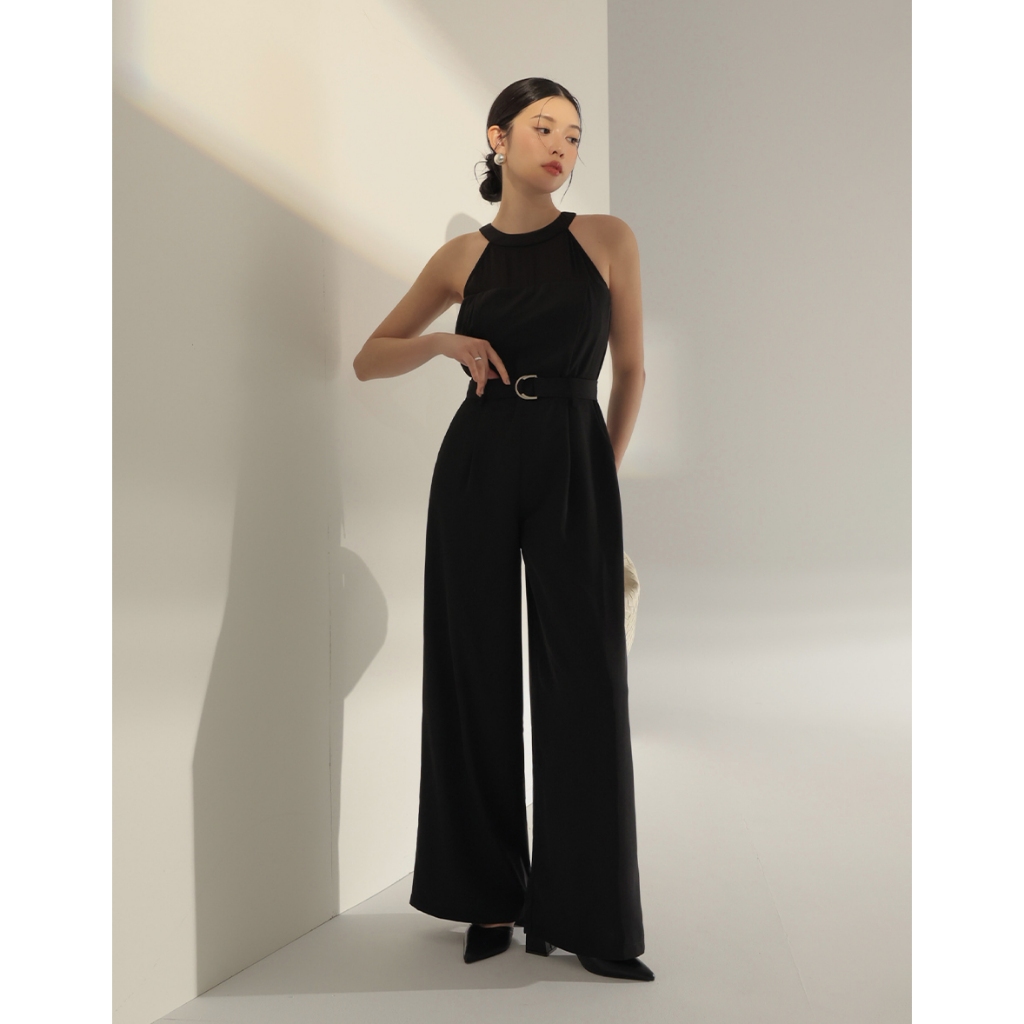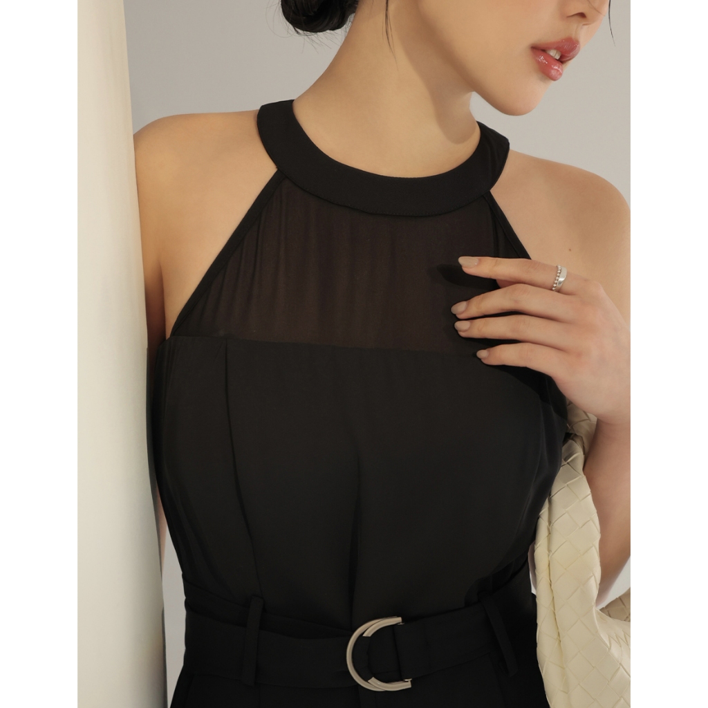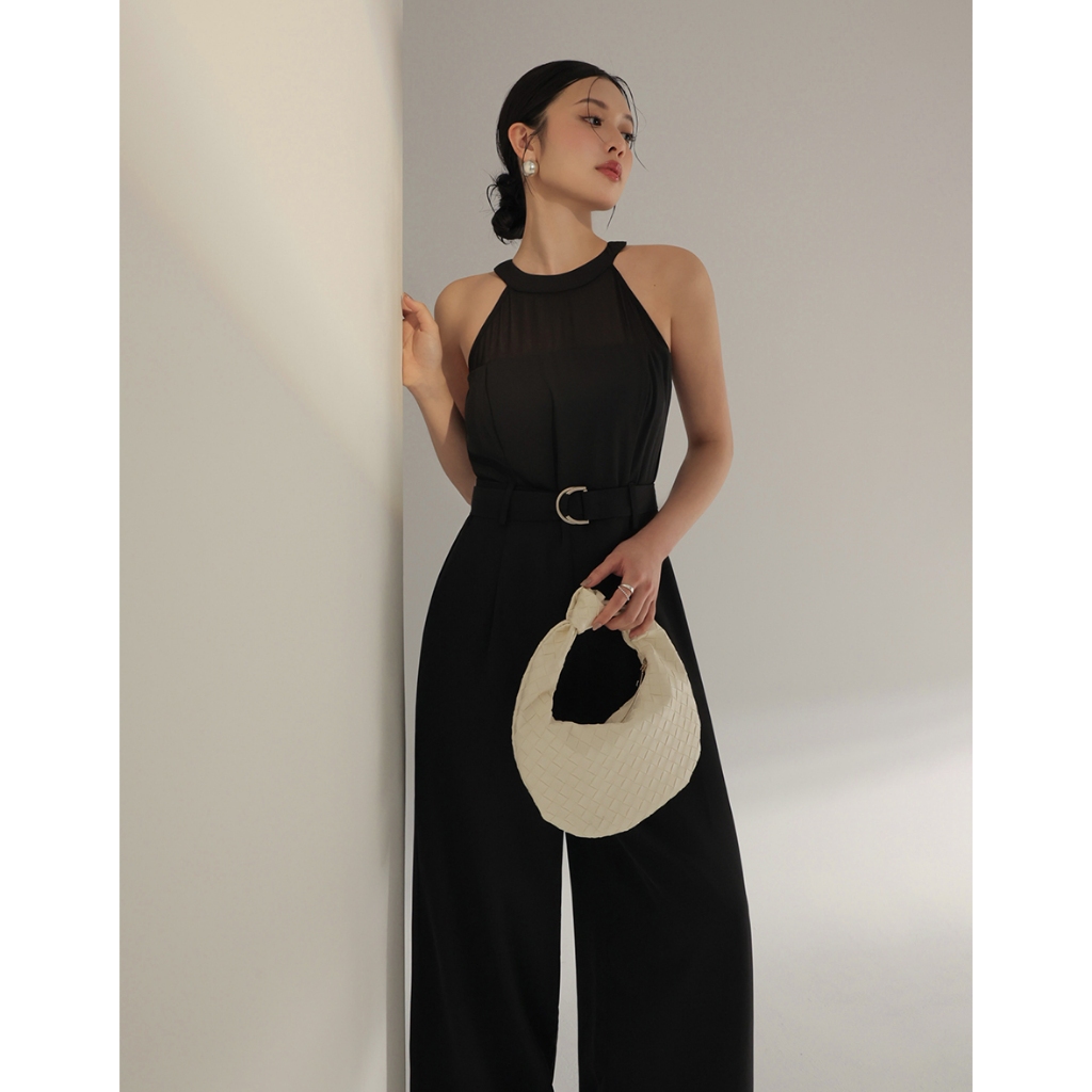 CHIC A SPACE 透肌拼接繞頸連身褲(附胸墊及腰帶)(黑/白) 女裝 現貨黑,S|黑,M|黑,L|白,S|白,M|白,LJumpsuitsAIR SPACE