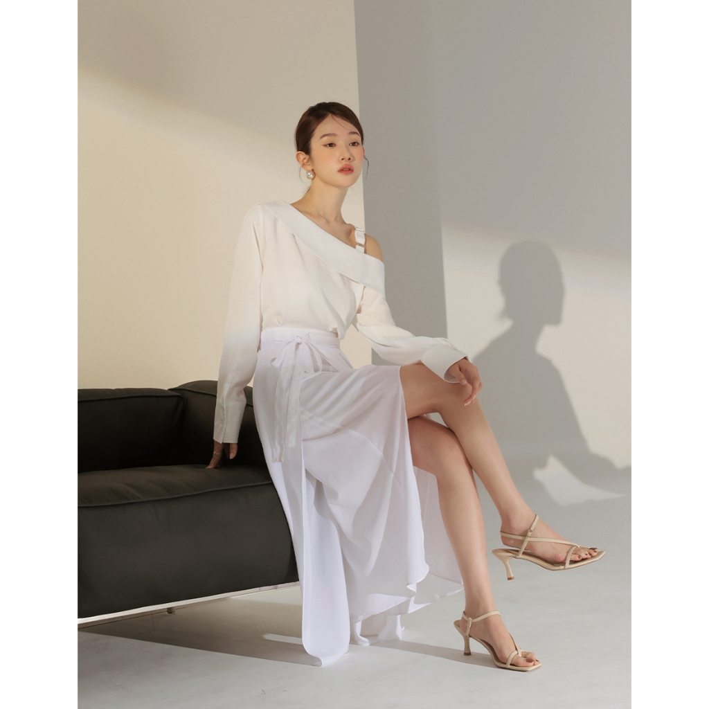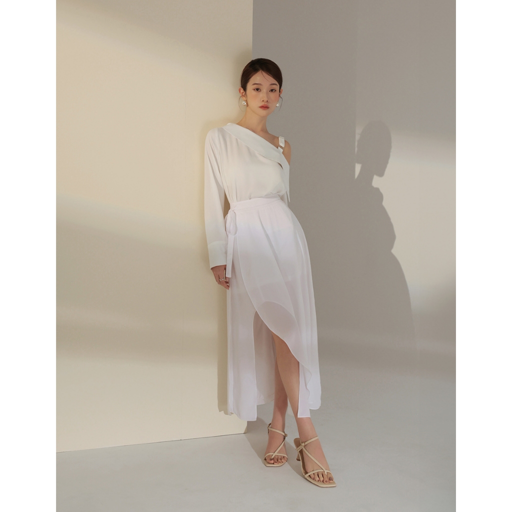 CHIC A SPACE 仙女清透綁帶開衩長裙(黑/白) 女裝 現貨黑,S|黑,M|黑,L|白,S|白,M|白,LAIR SPACE