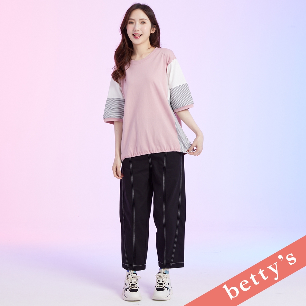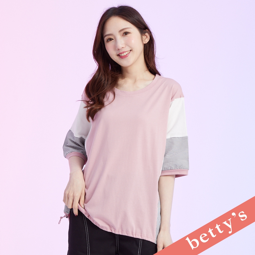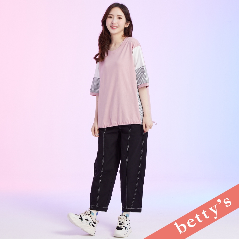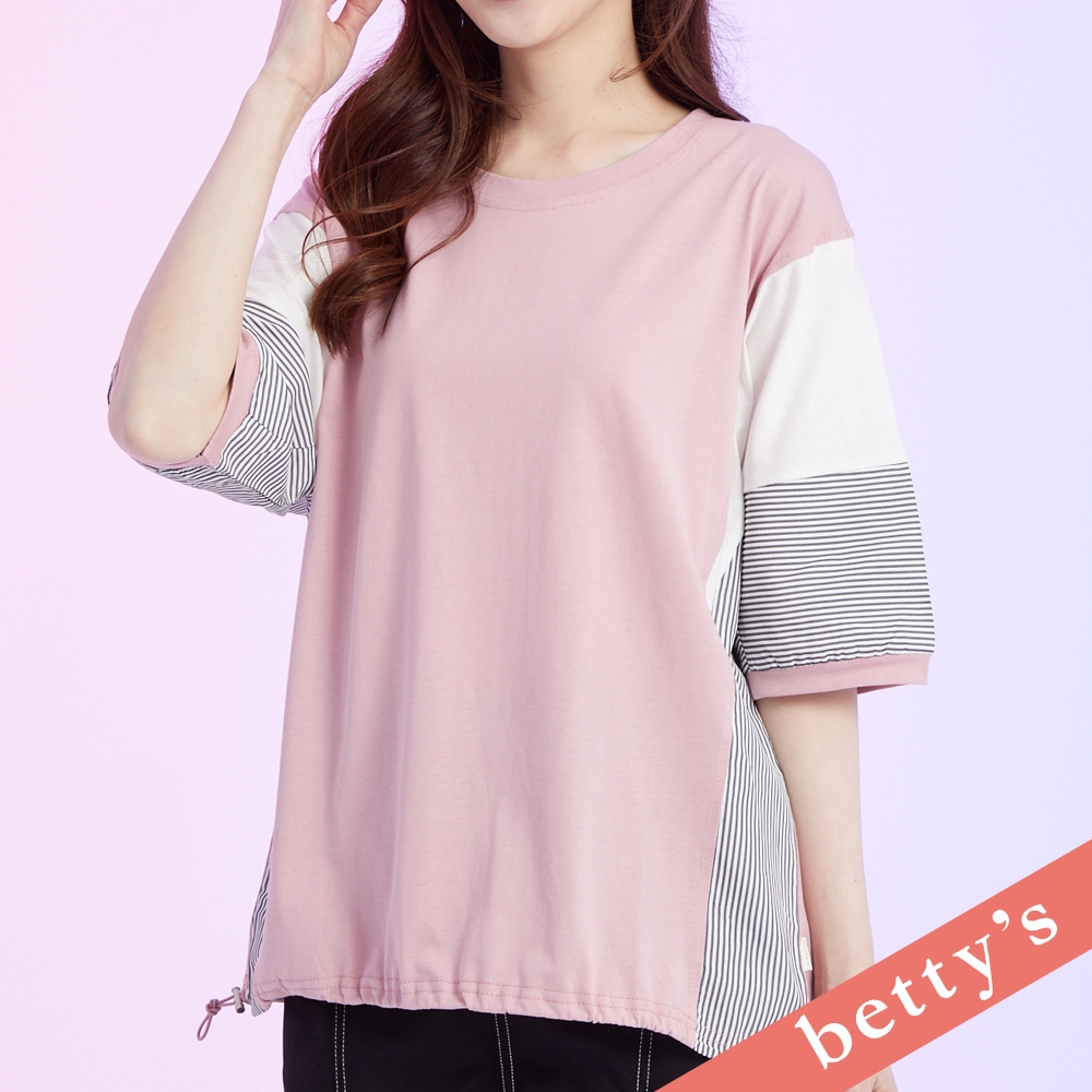 betty’s貝蒂思(41)條紋撞色剪裁抽繩五分袖T-shirt(粉色)粉色,FT-shirtsbetty’s貝蒂思