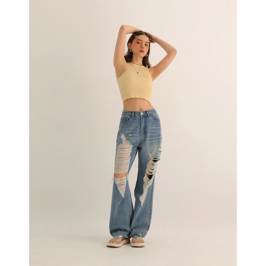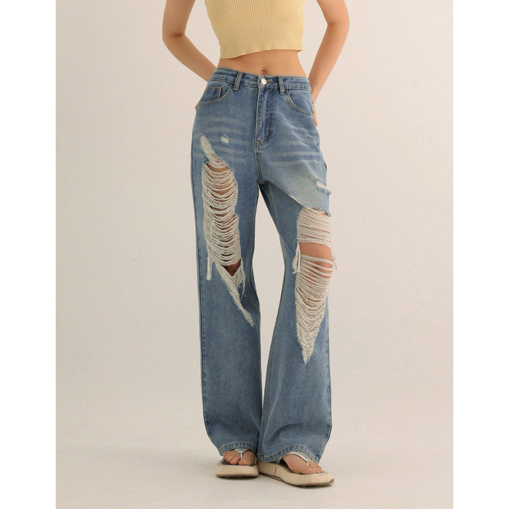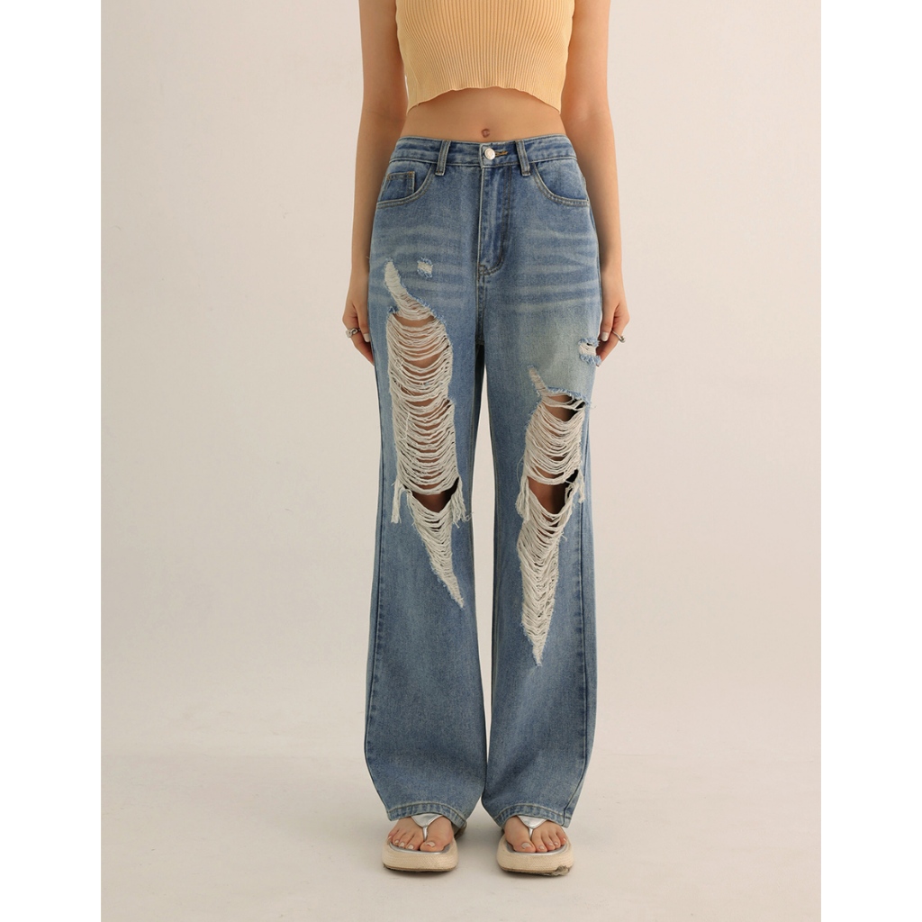 AIR SPACE 破壞感直筒牛仔褲(淺藍) 女裝 現貨淺藍,S|淺藍,M|淺藍,LAIR SPACE