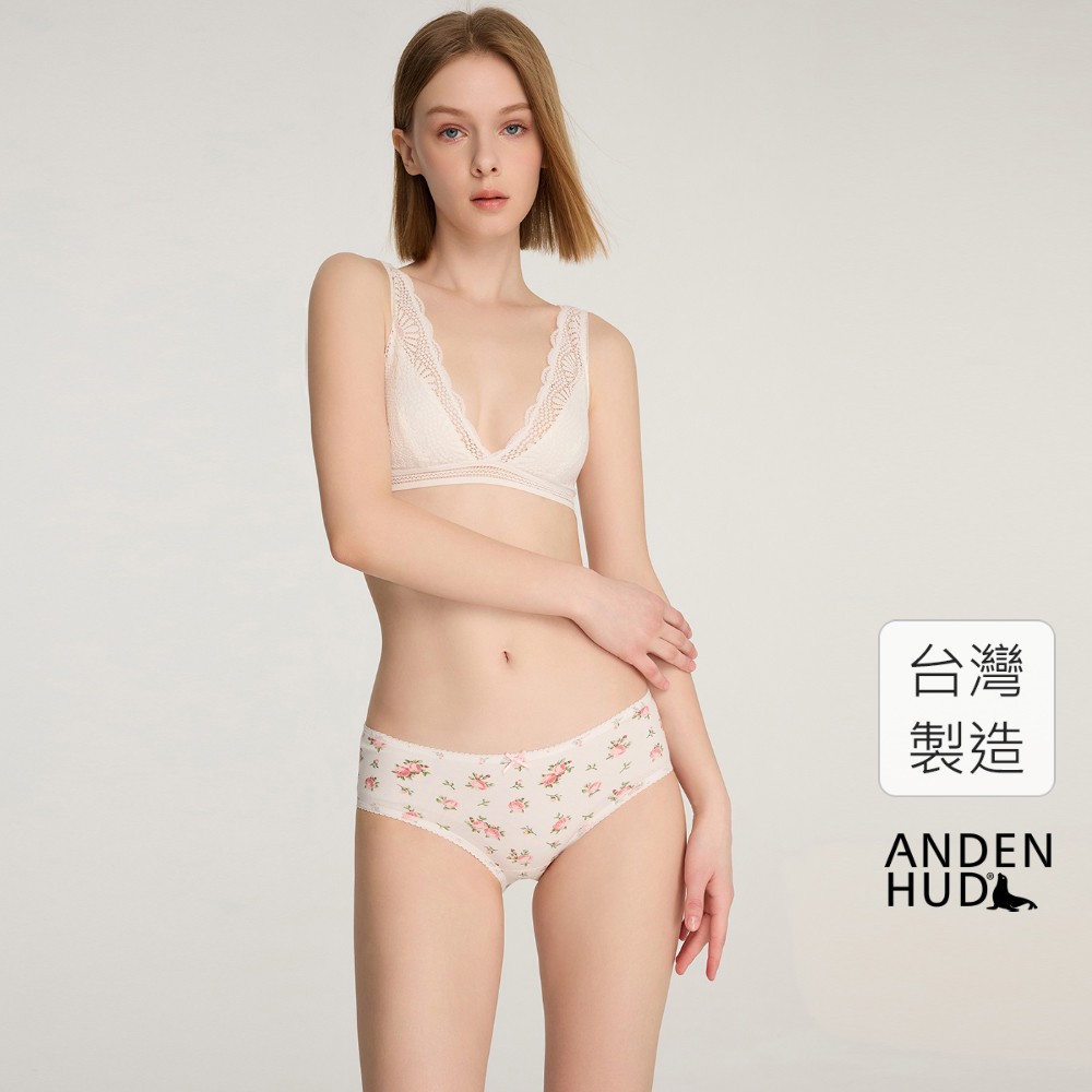 【Anden Hud】Balletcore .花邊中腰三角內褲(米白-玫瑰碎花) 純棉台灣製M|L|XLPantiesAnden Hud 台灣製內著 官方旗艦店