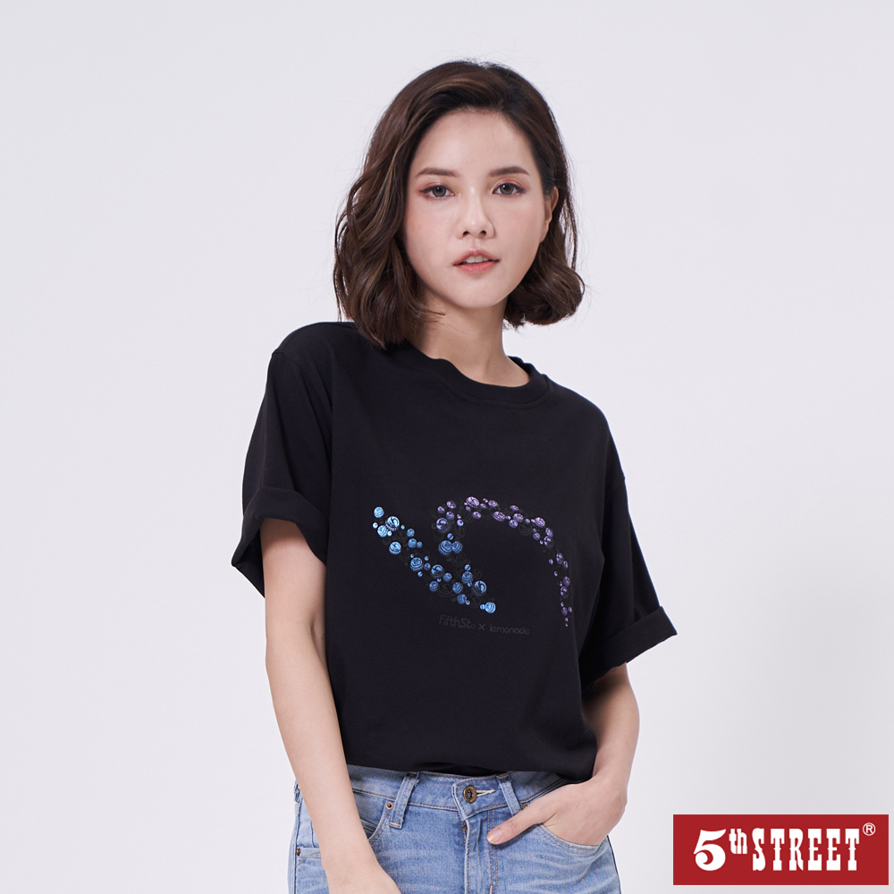 【5th STREET】 中性 瓶蓋袋花騰袋花短袖T恤-黑色 (570886)S|M|LT-shirts5thStreet 官方旗艦店