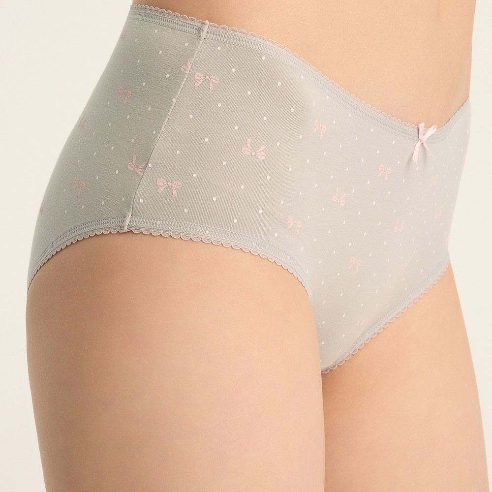 【Anden Hud】XXL Unique You.花邊高腰三角內褲(溫和灰-點點蝴蝶結) 純棉台灣製XXLPantiesAnden Hud 台灣製內著 官方旗艦店