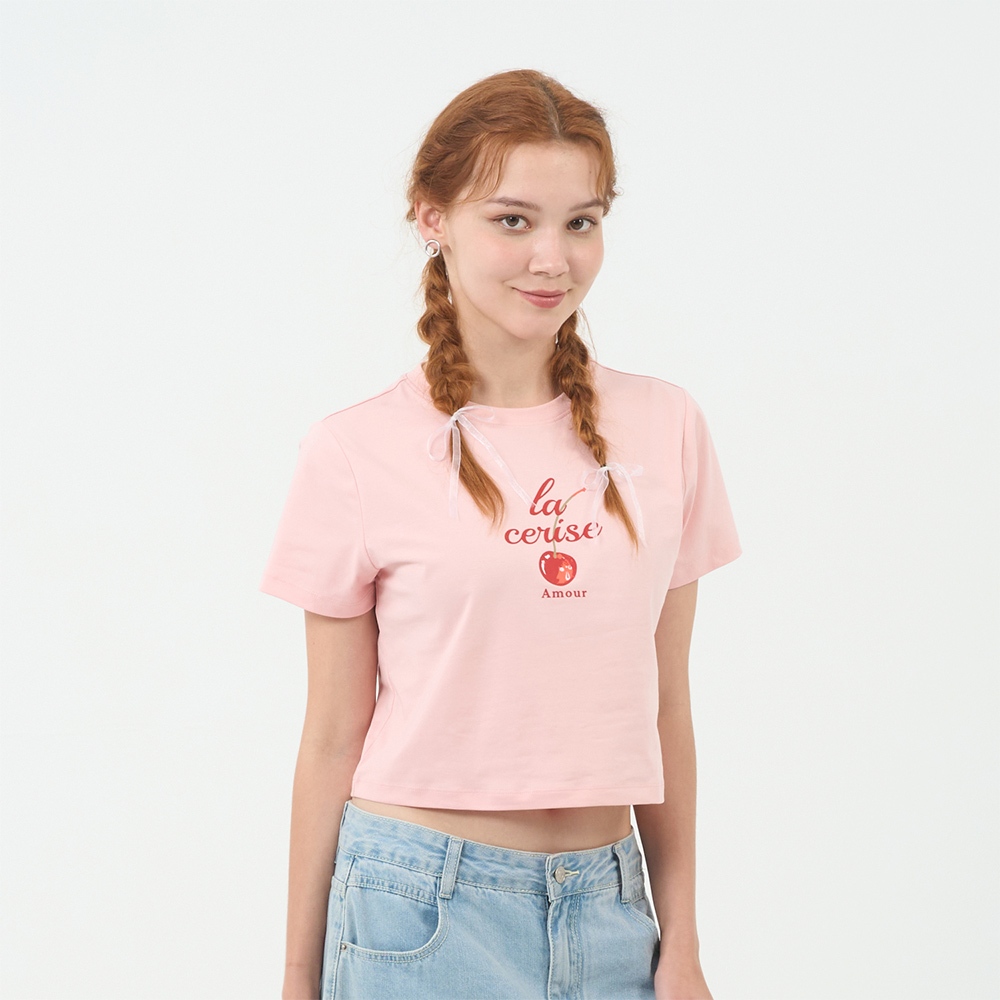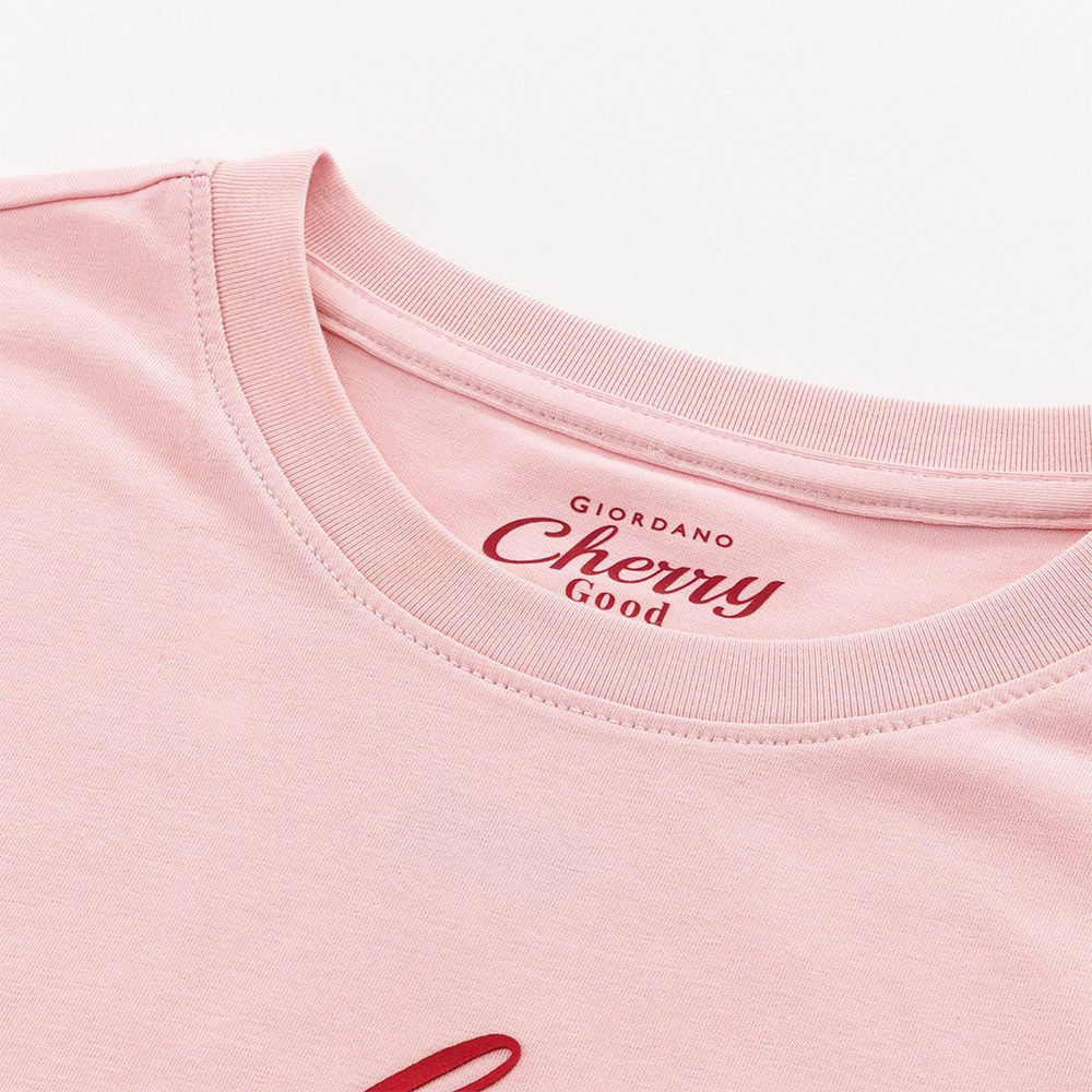GIORDANO 女裝SORONA短版短袖上衣 Cherry Much系列 0539522901 桃皮粉紅,M|01 桃皮粉紅,L|01 桃皮粉紅,XL|01 桃皮粉紅,ST-shirts【GIORDANO 佐丹奴】官方旗艦館