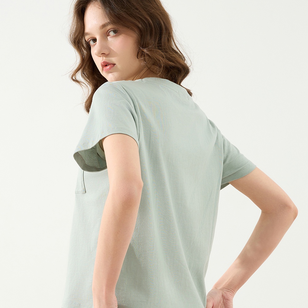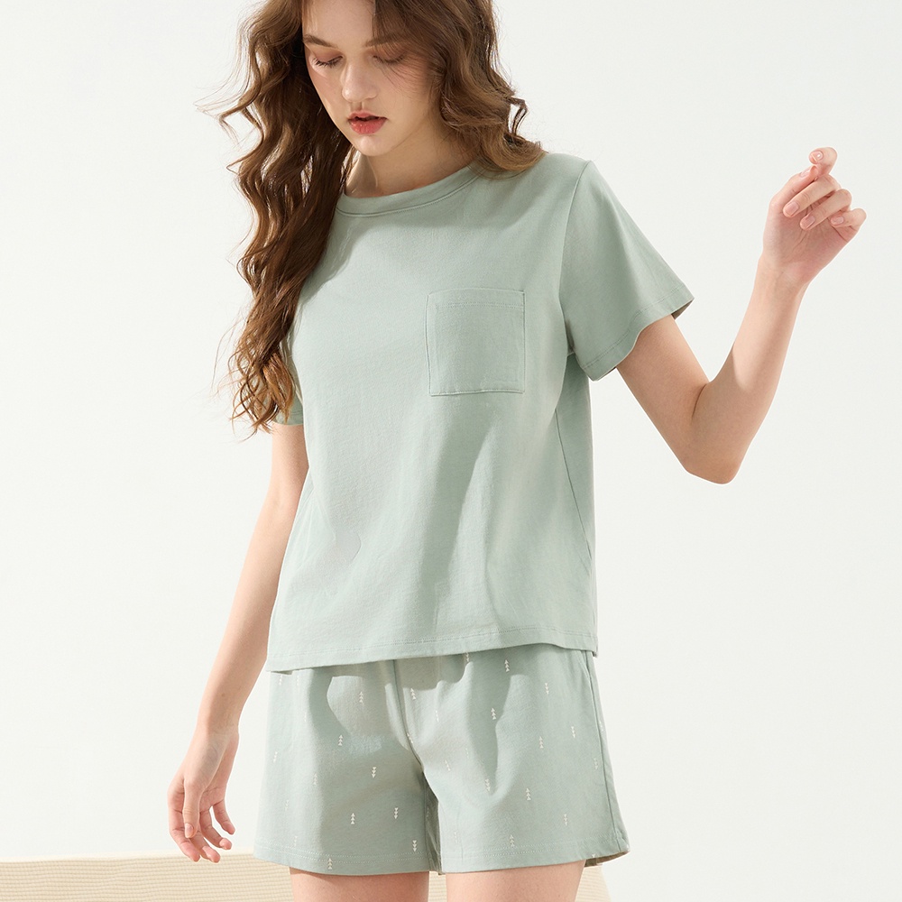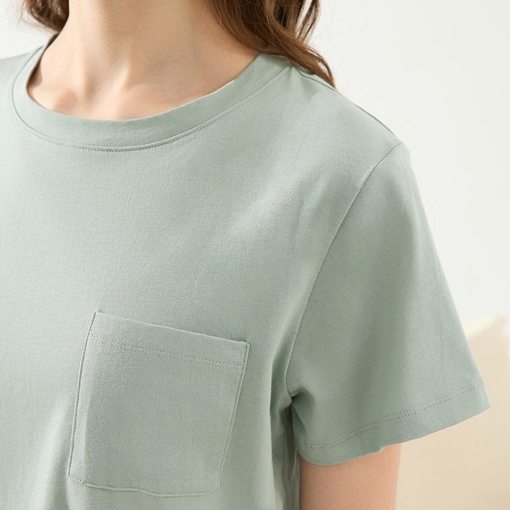 【Anden Hud】上衣_陽光微暖.純棉圓領口袋短袖居家睡衣(淺灰綠) 純棉台灣製S|M|L|XLPajamasAnden Hud 台灣製內著 官方旗艦店