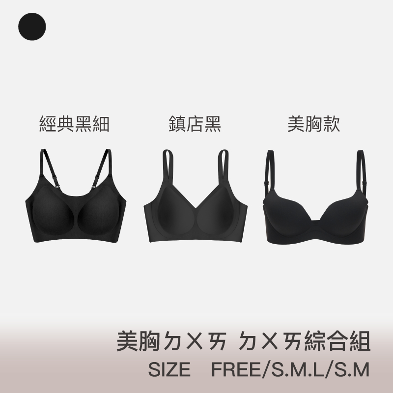 三件組 美胸ㄉㄨㄞㄉㄨㄞ組【美胸款 鎮店款 經典款】無鋼圈內衣 內衣 運動內衣 女裝【美胸S】+【經典黑細】+【鎮店黑S】|【美胸S】+【經典黑細】+【鎮店黑M】|【美胸M】+【經典黑細】+【鎮店黑M】|【美胸M】+【經典黑細】+【鎮店黑L】Sets24HRS無感失憶內衣 品牌旗艦店