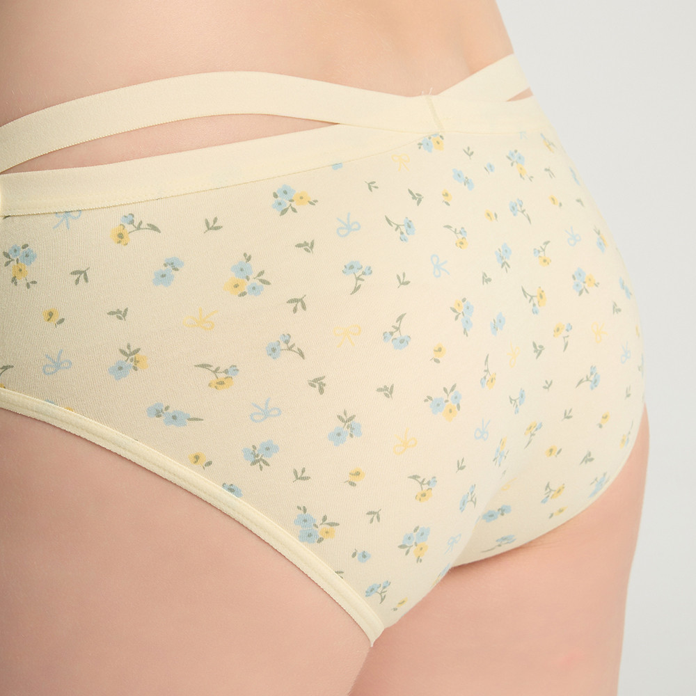 【Anden Hud】法式渡假.交叉美臀中腰三角內褲(蛋奶白-夏日花語) 純棉台灣製M|L|XLPantiesAnden Hud 台灣製內著 官方旗艦店