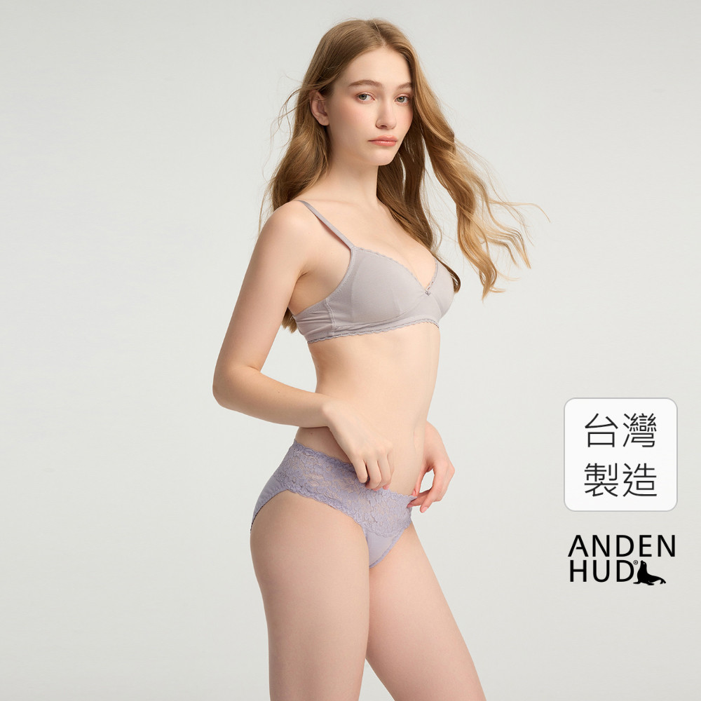【Anden Hud】經典純色.抓皺蕾絲中腰三角內褲(薰衣草紫) 純棉台灣製M|L|XLPantiesAnden Hud 台灣製內著 官方旗艦店