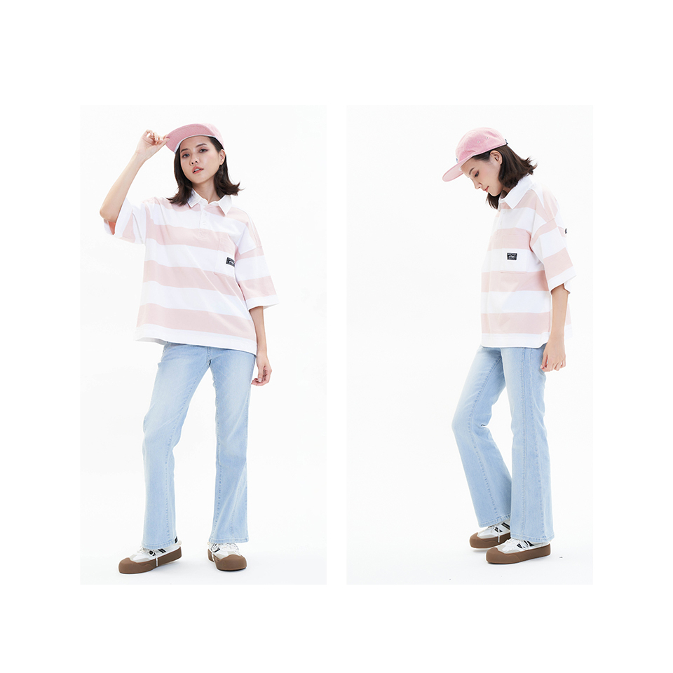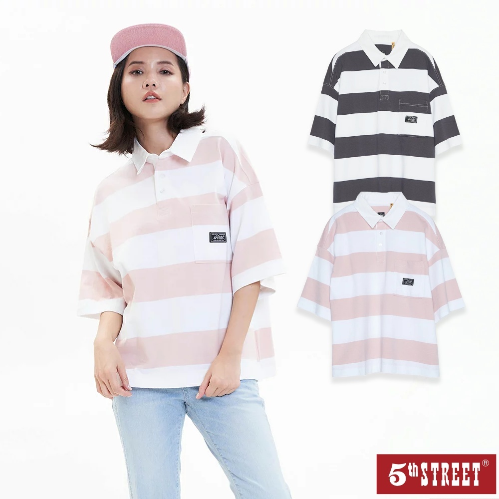【5th STREET】 polo衫 短袖 上衣 polo 條紋 女裝 粉紅 (570939)FT-shirts5thStreet 官方旗艦店