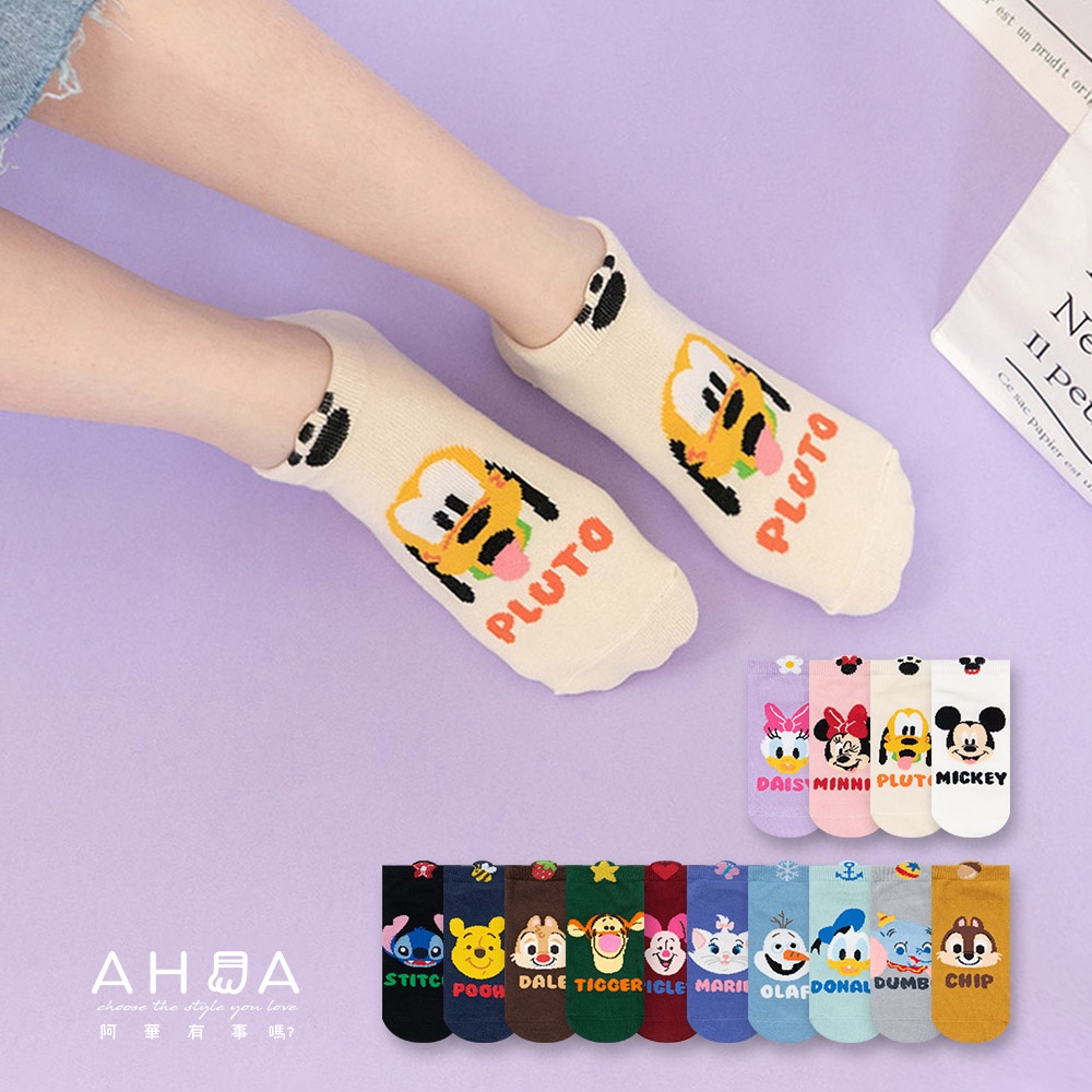 AHUA阿華有事嗎 韓國襪子 迪士尼人物小頭文字中筒襪 K1891 韓妞必備 百搭純棉襪 卡通 日系 可愛