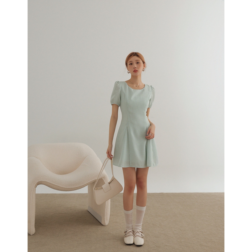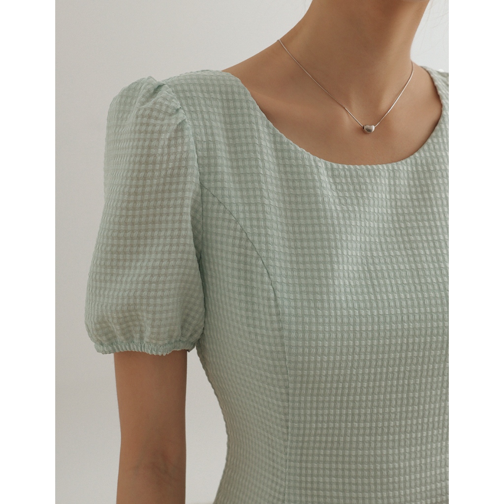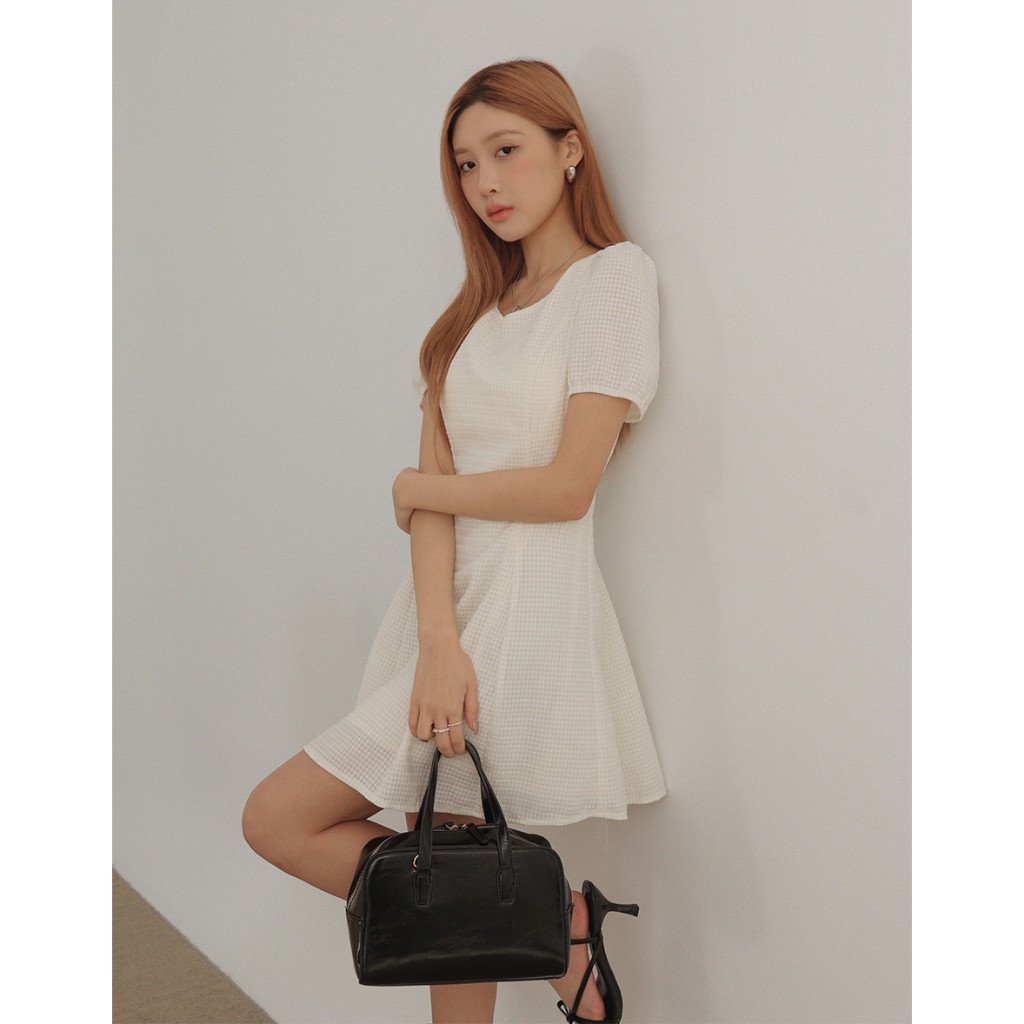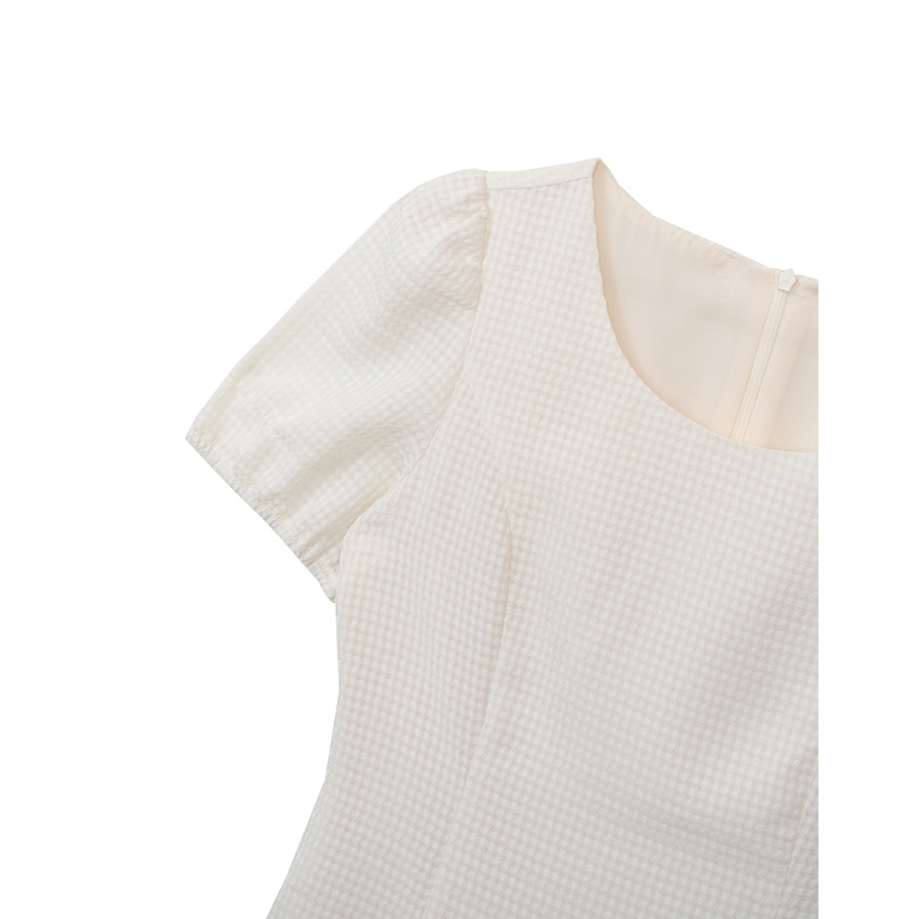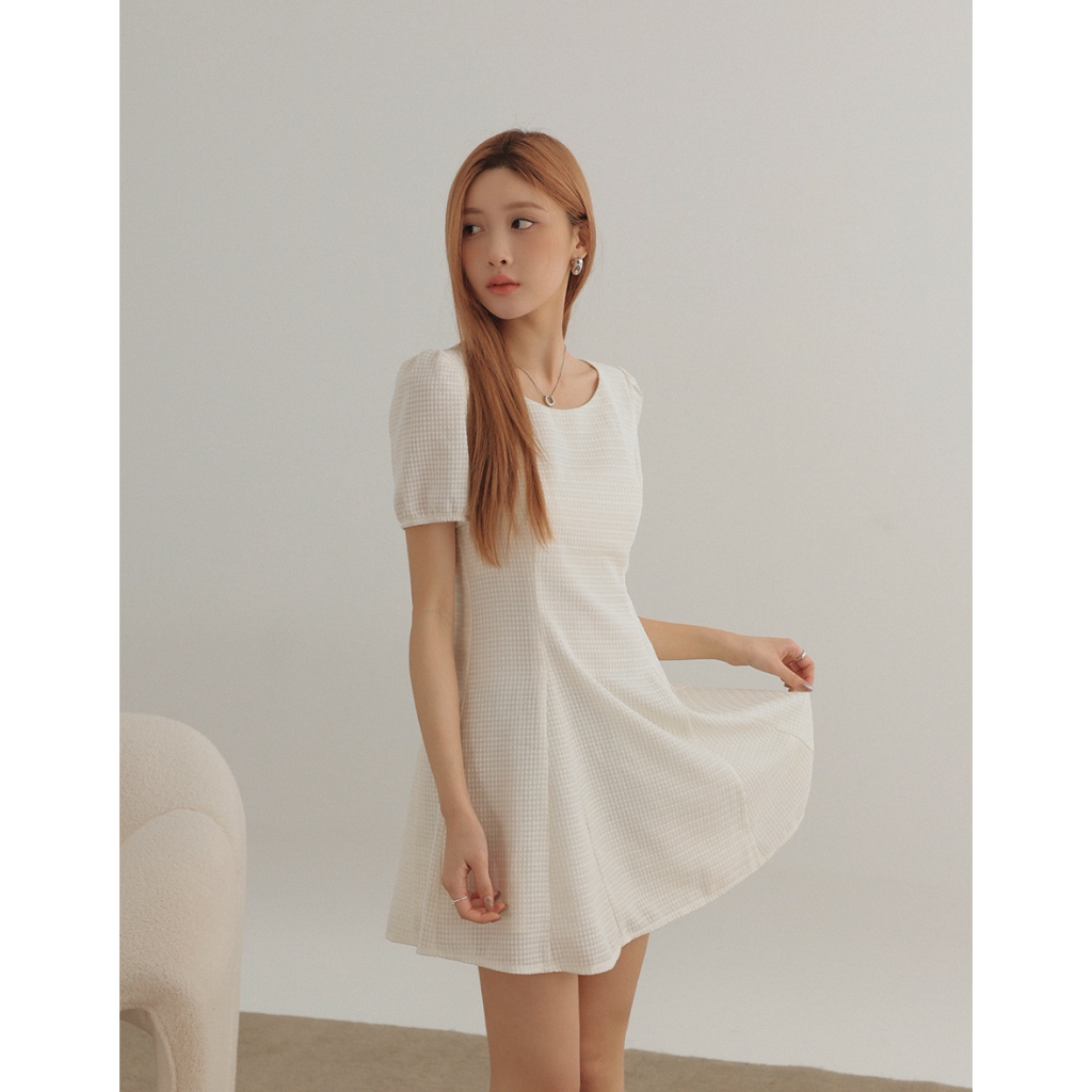 AIR SPACE LADY 織紋修身澎袖短洋裝(白/藍) 女裝 現貨白,S|白,M|白,L|藍,S|藍,M|藍,LAIR SPACE