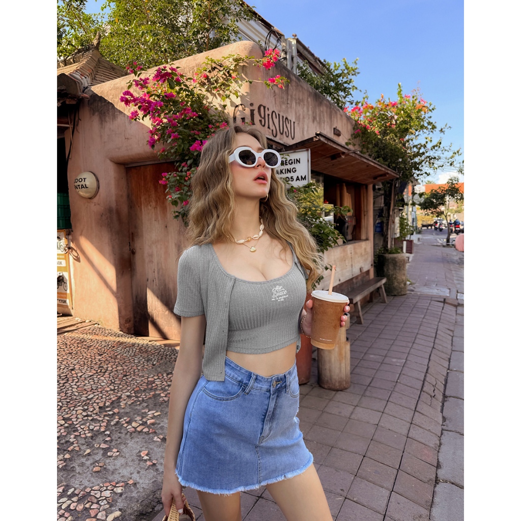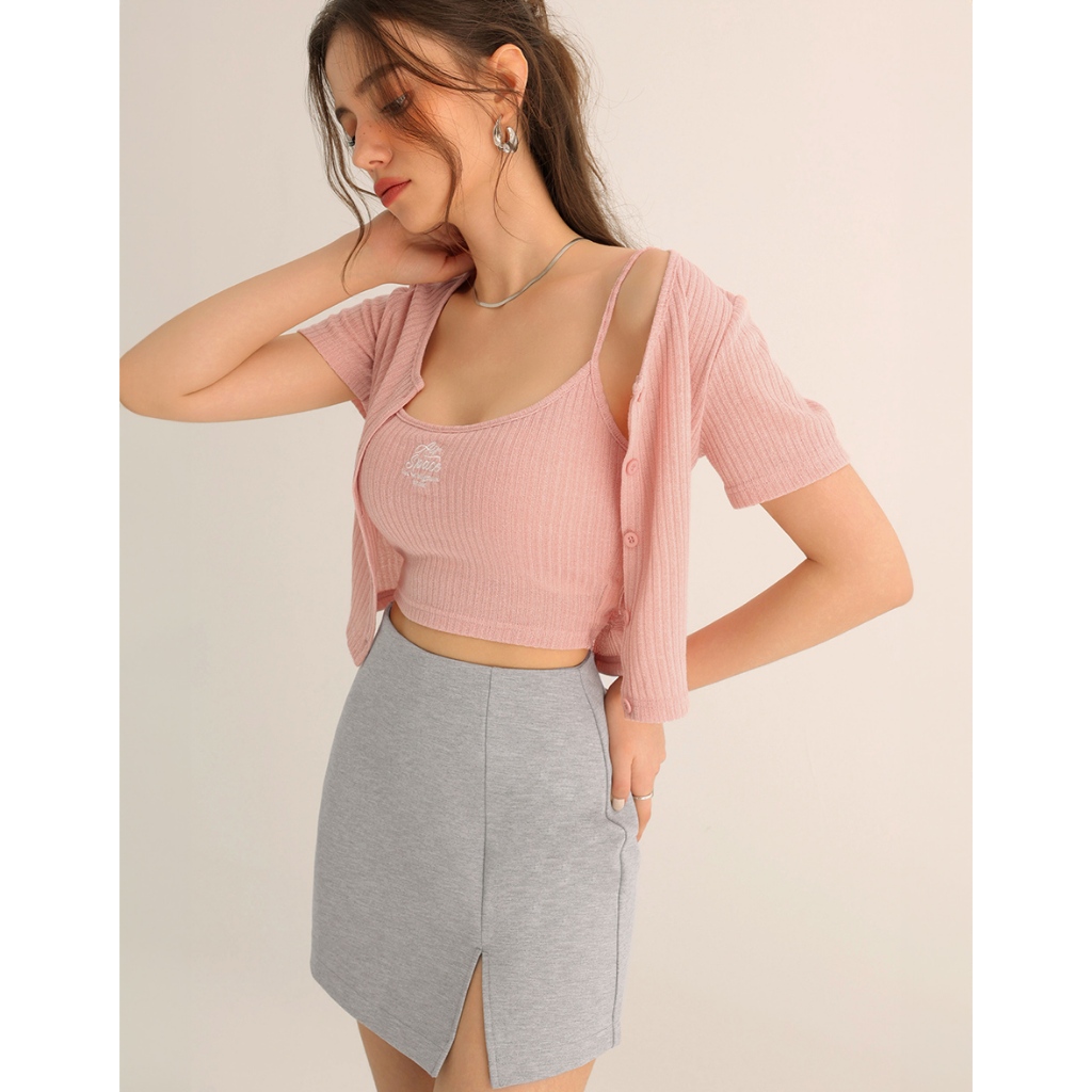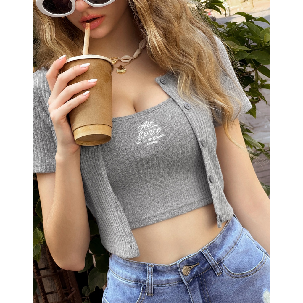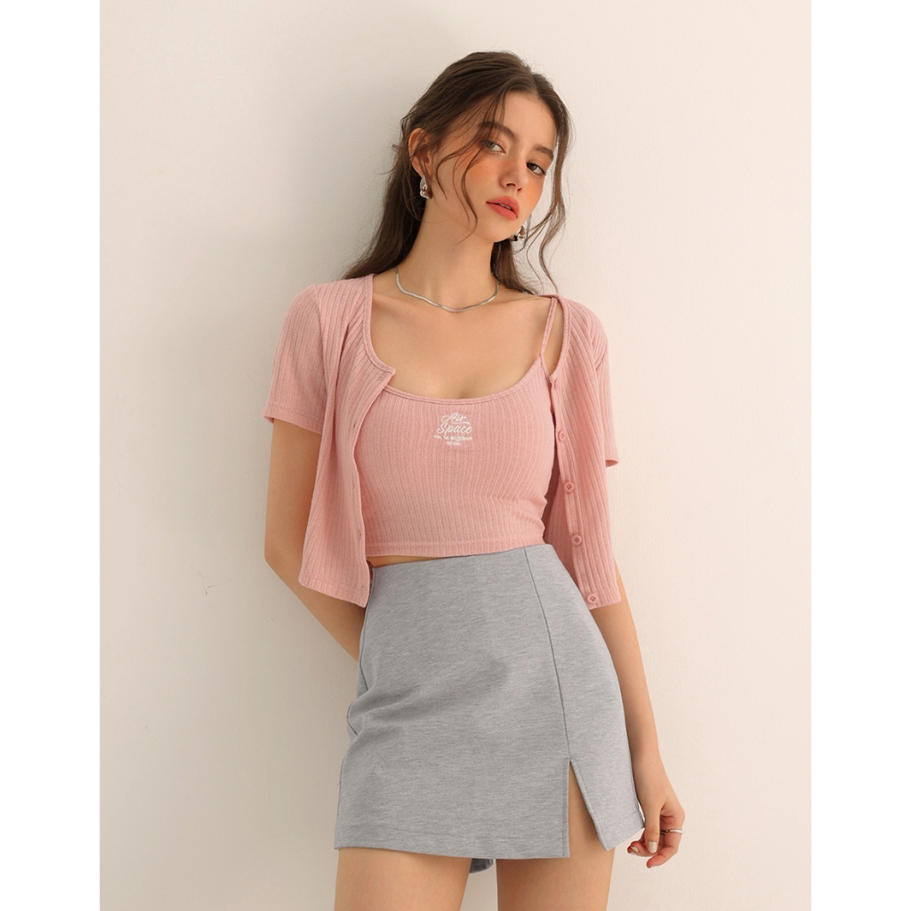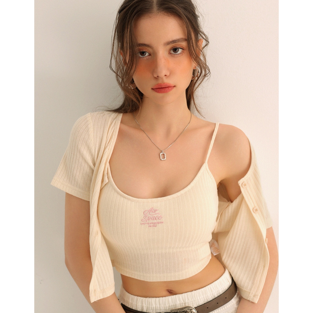 AIR SPACE 品牌LOGO刺繡羅紋套裝(附胸墊)(杏/粉紅/淺灰) 女裝 現貨杏,S|杏,M|杏,L|粉紅,S|粉紅,M|粉紅,L|淺灰,S|淺灰,M|淺灰,LIndividual SetsAIR SPACE