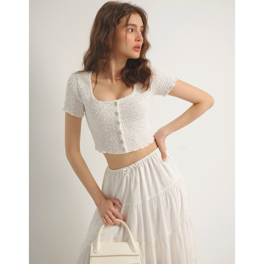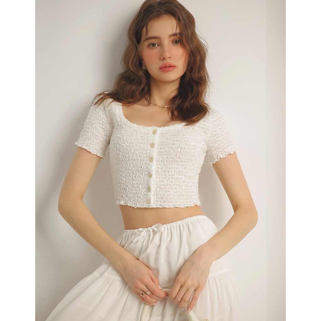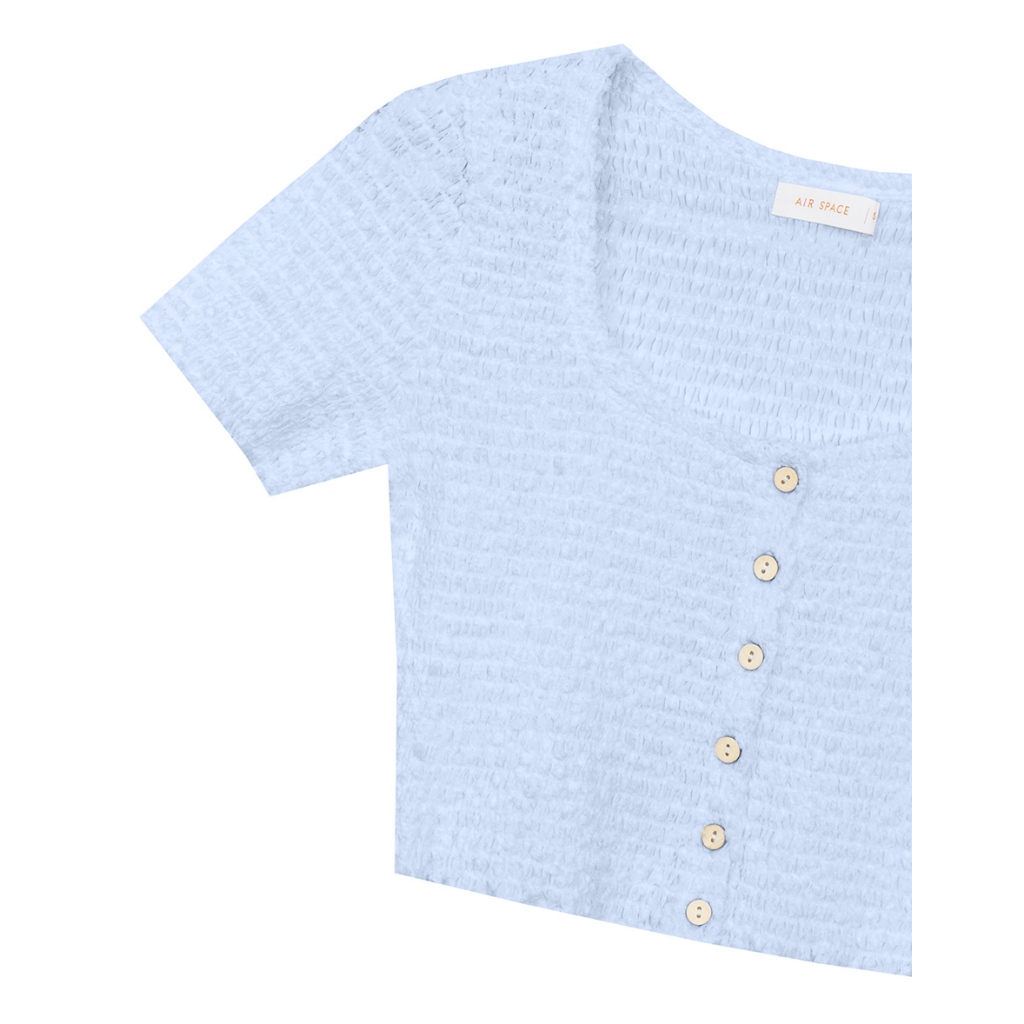 AIR SPACE 圈圈紗縐摺設計短袖上衣(白/藍) 女裝 現貨白,S|白,M|白,L|藍,S|藍,M|藍,LOthersAIR SPACE