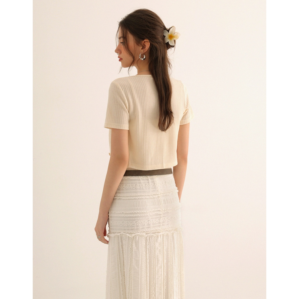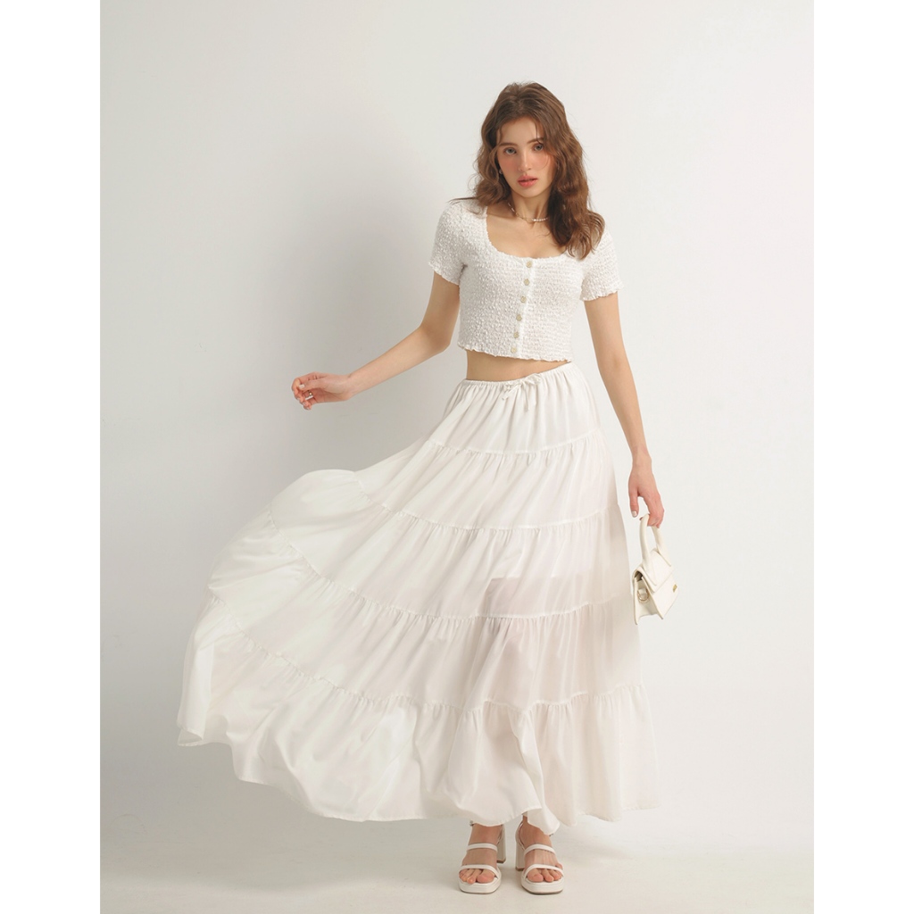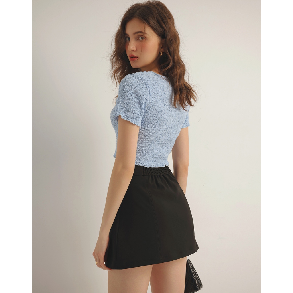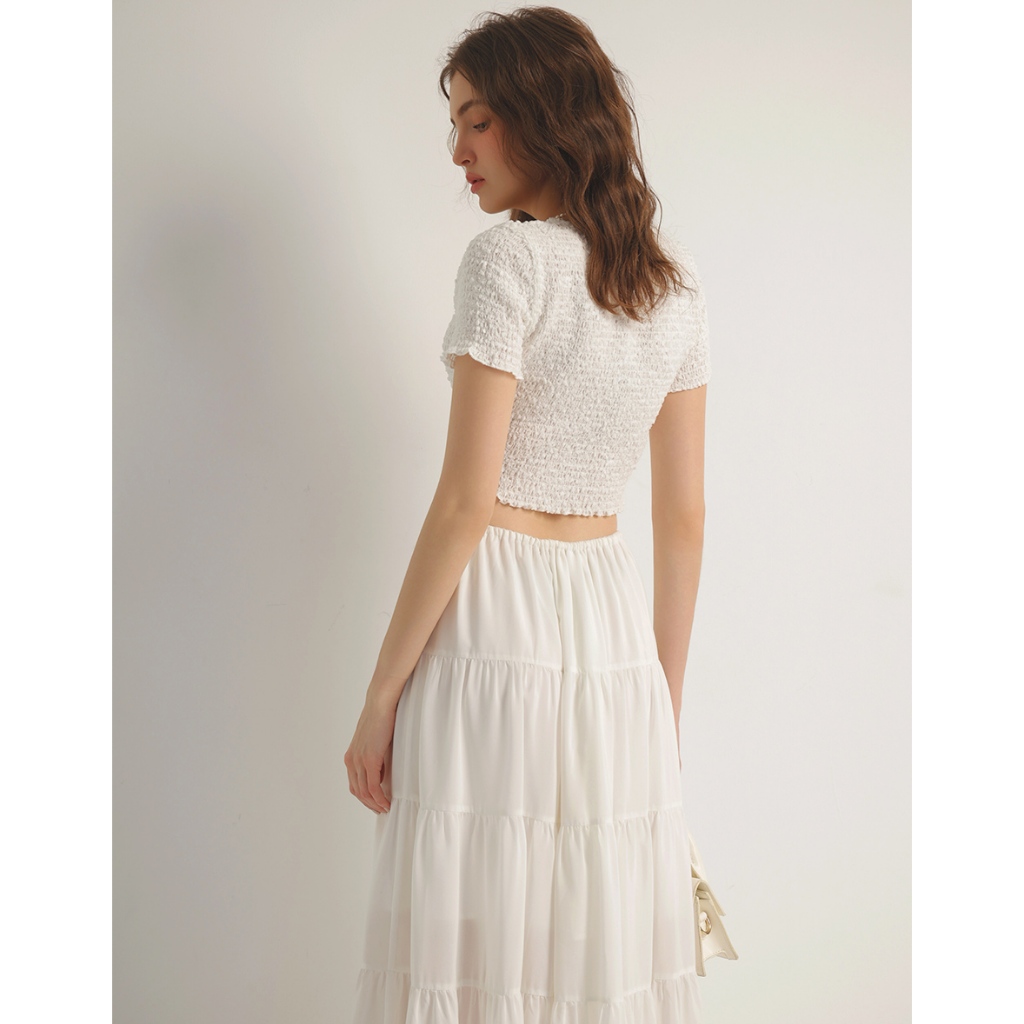 AIR SPACE 圈圈紗縐摺設計短袖上衣(白/藍) 女裝 現貨白,S|白,M|白,L|藍,S|藍,M|藍,LOthersAIR SPACE