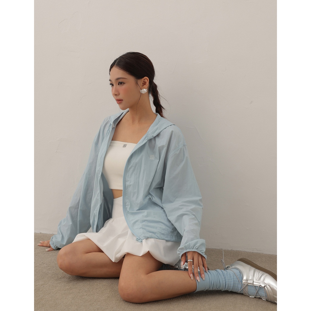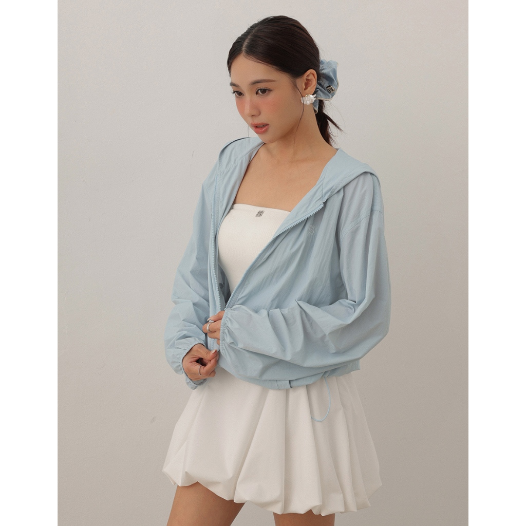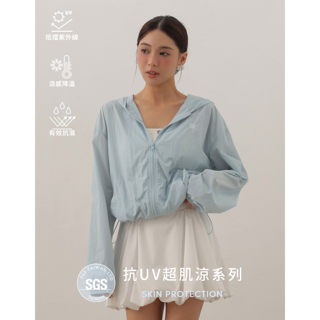 AIR SPACE LADY 抗UV超肌涼感防潑水抽繩連帽外套(白/藍) 女裝 現貨白,F|藍,FJacketsAIR SPACE