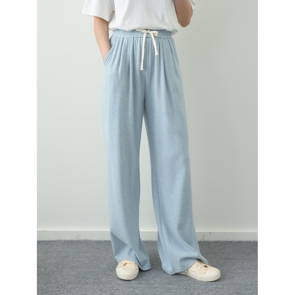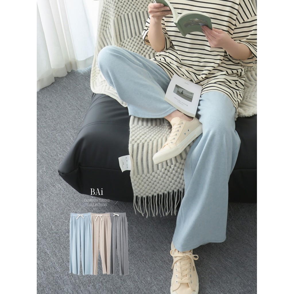 BAi白媽媽 抽繩針織寬褲/口袋鬆緊腰垂感闊腿褲-台灣現貨 隔日到貨【350081】藍(05)|灰(10)|卡(11)PantsBAi白媽媽 品牌旗艦店