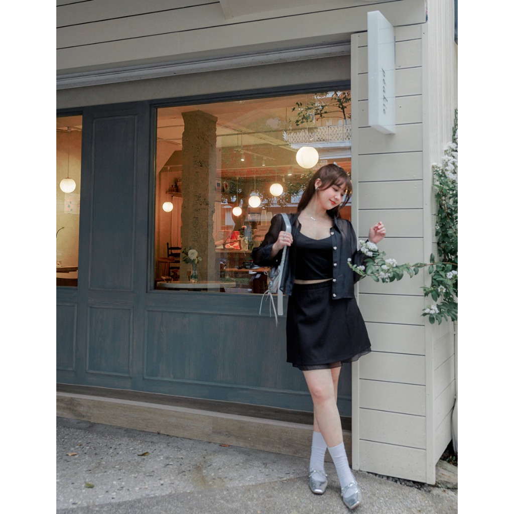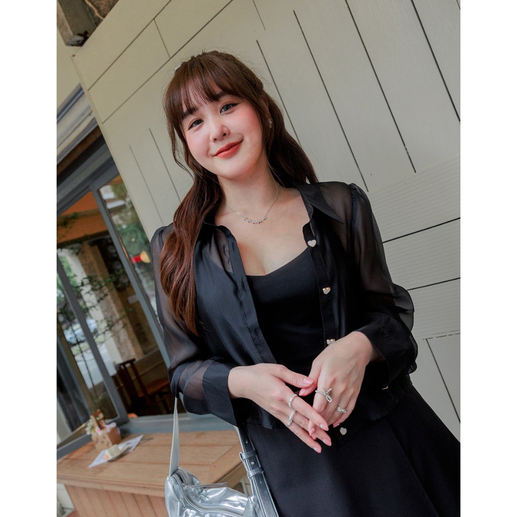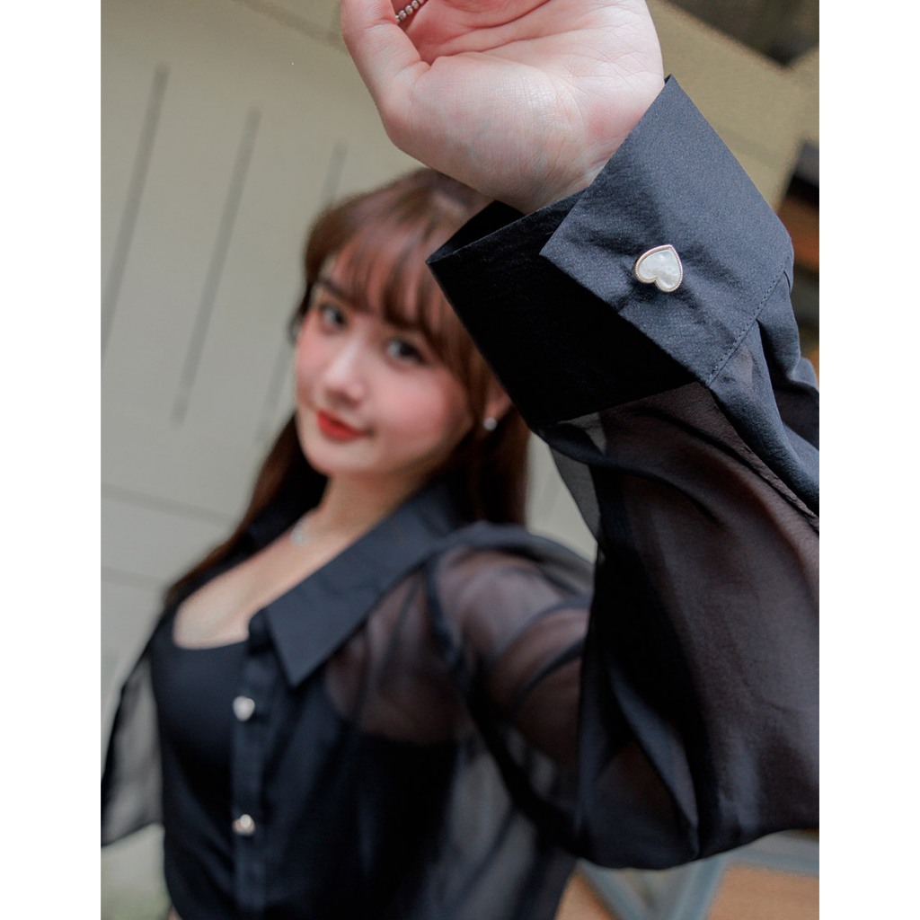 AIR SPACE PLUS 透膚愛心釦襯衫套裝(附胸墊)(黑/白) 女裝 現貨 大尺碼 中大尺碼黑,XL|黑,2XL|黑,3XL|白,XL|白,2XL|白,3XLIndividual SetsAIR SPACE