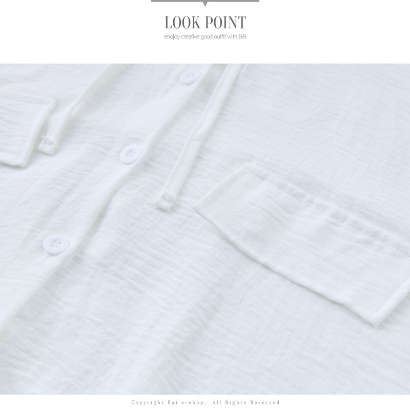 BAi白媽媽 皺皺紋理連帽襯衫/假袋蓋長袖開衫-台灣現貨 隔日到貨【350215】白_透(01)|灰(10)Shirts & BlousesBAi白媽媽 品牌旗艦店