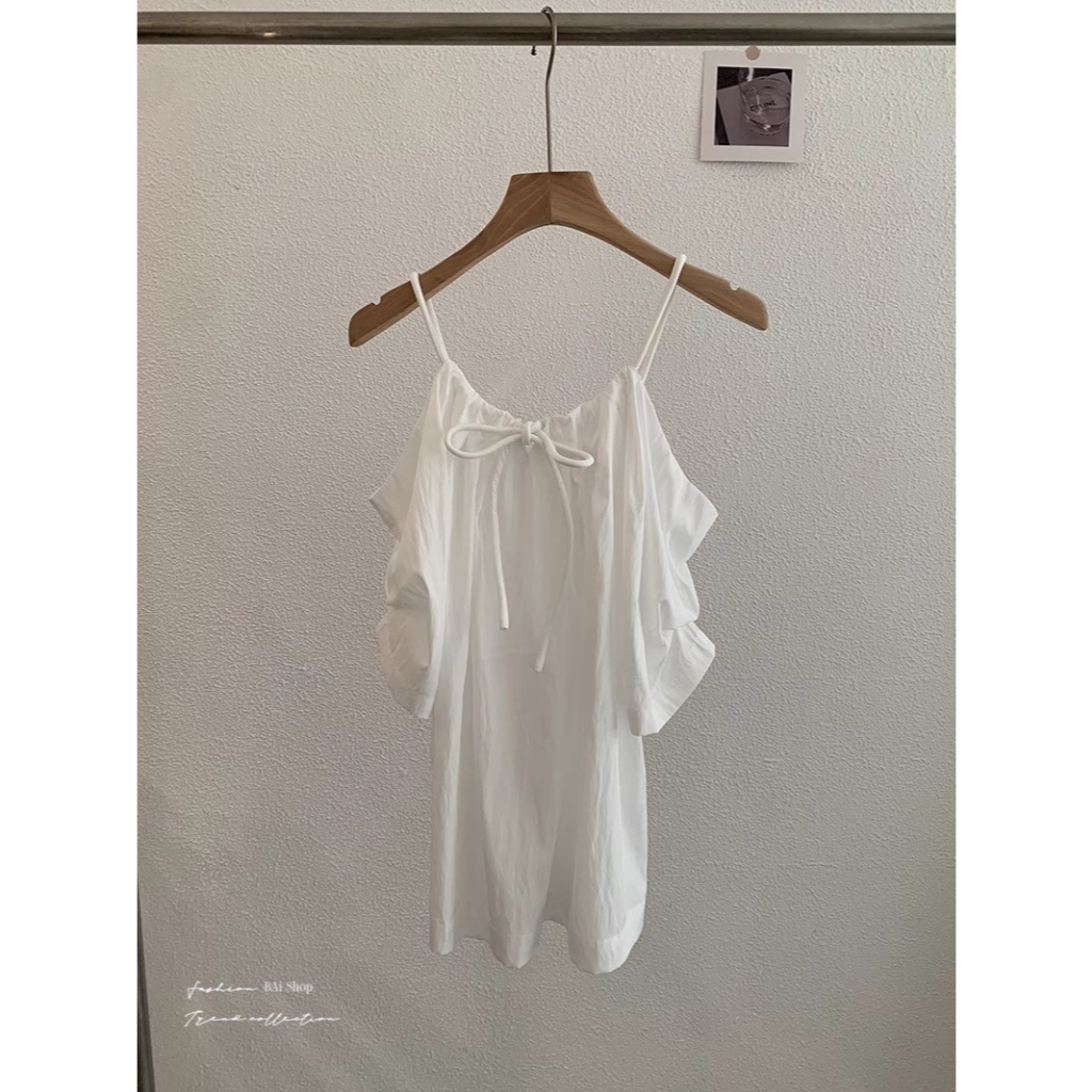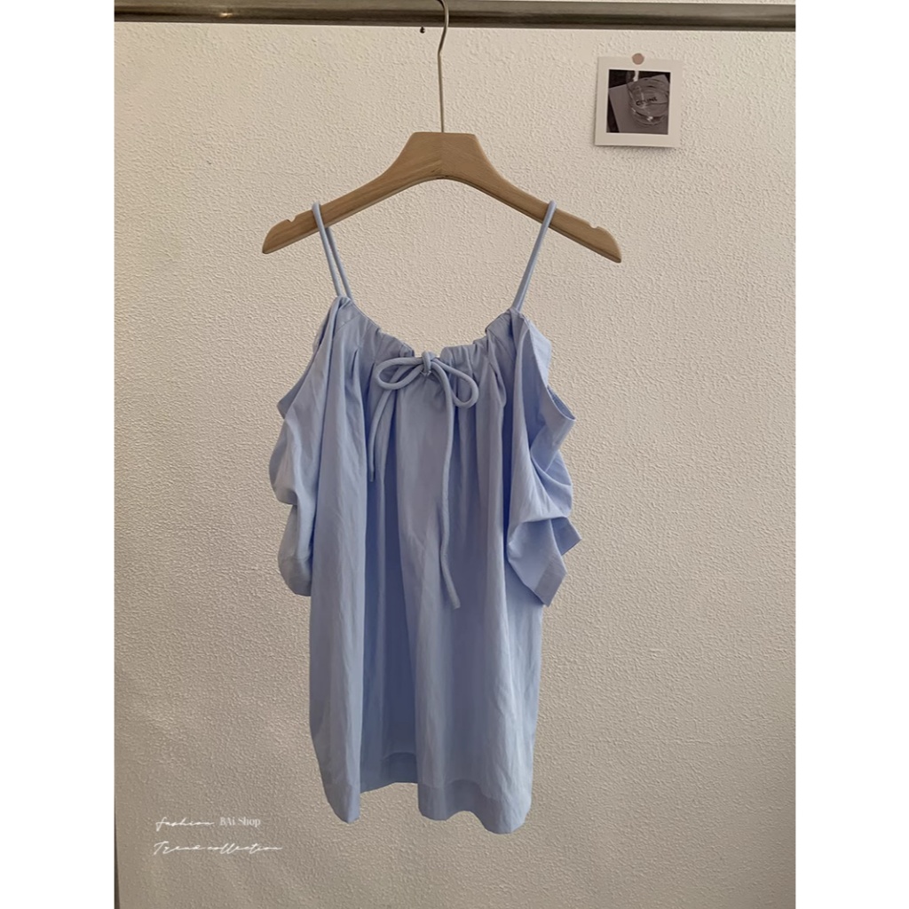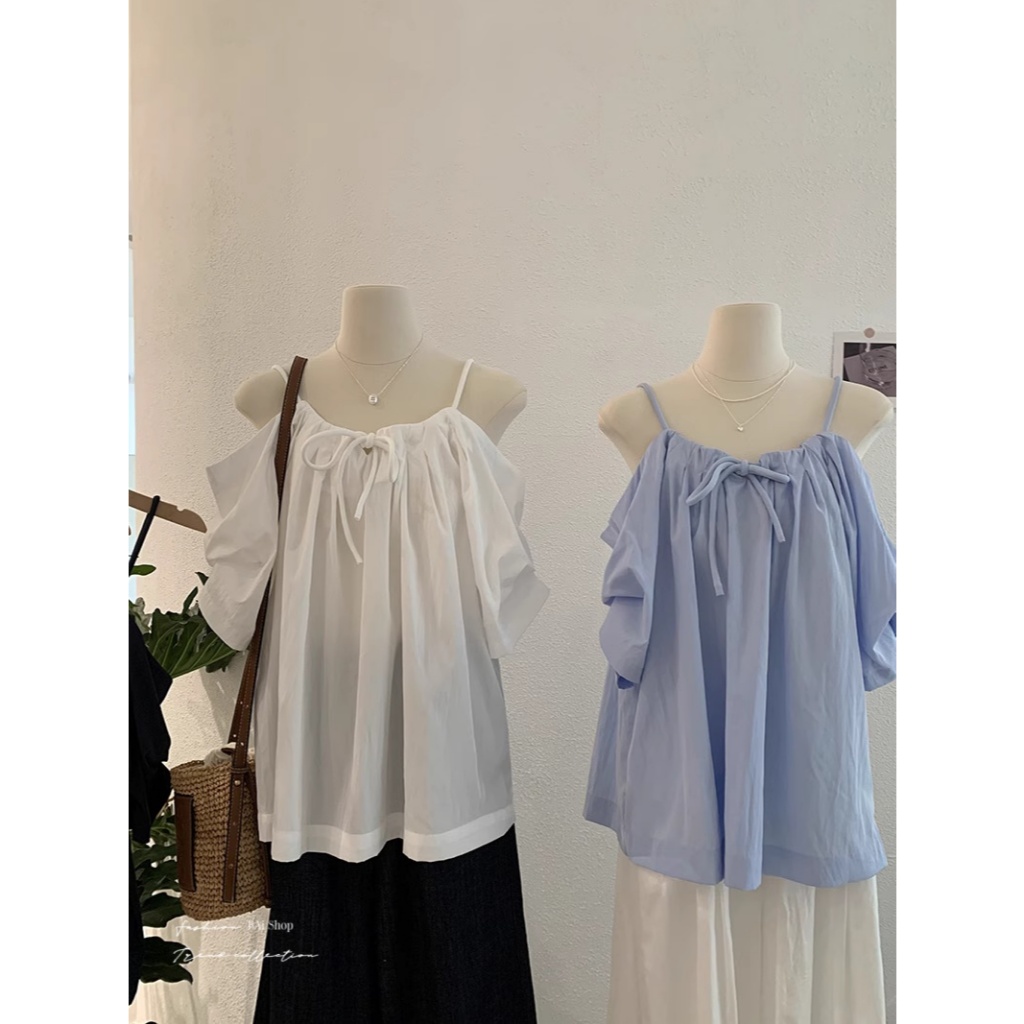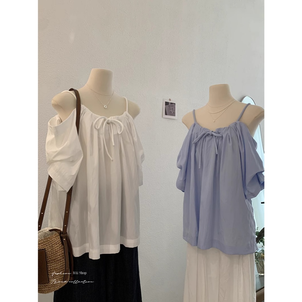 BAi白媽媽 露肩上衣/韓版寬鬆抽繩短袖衫 -台灣現貨 隔日到貨【350432】白(01)|藍(05)T-shirtsBAi白媽媽 品牌旗艦店