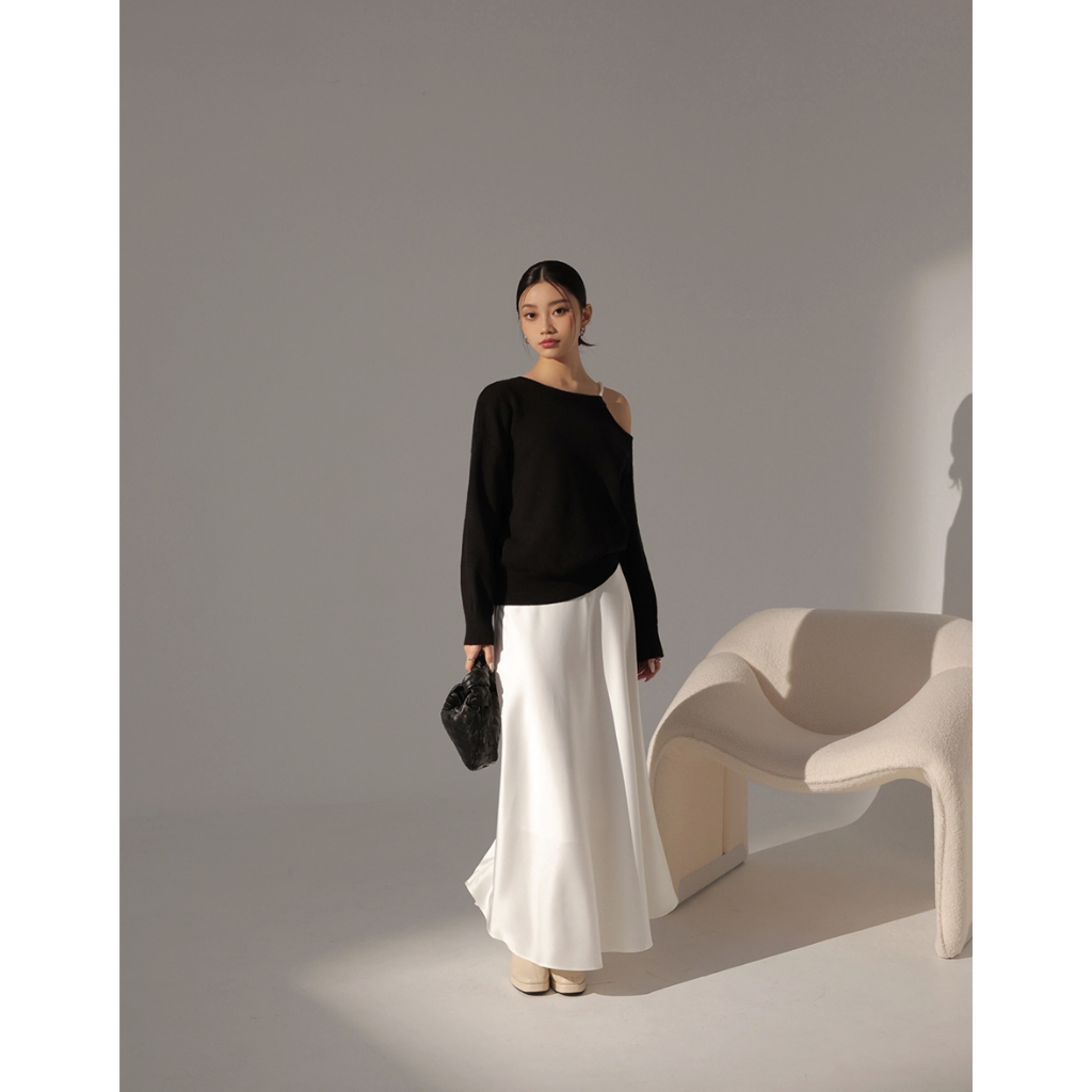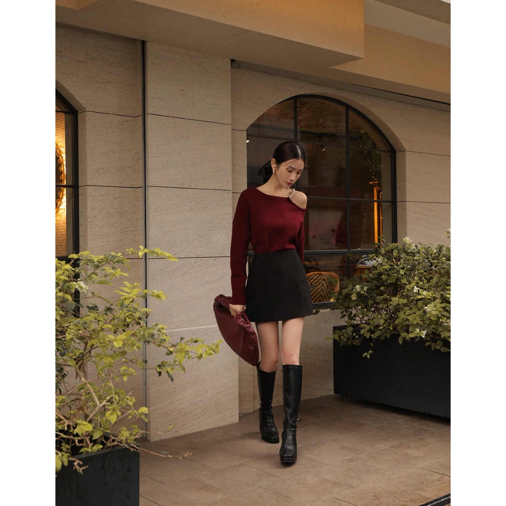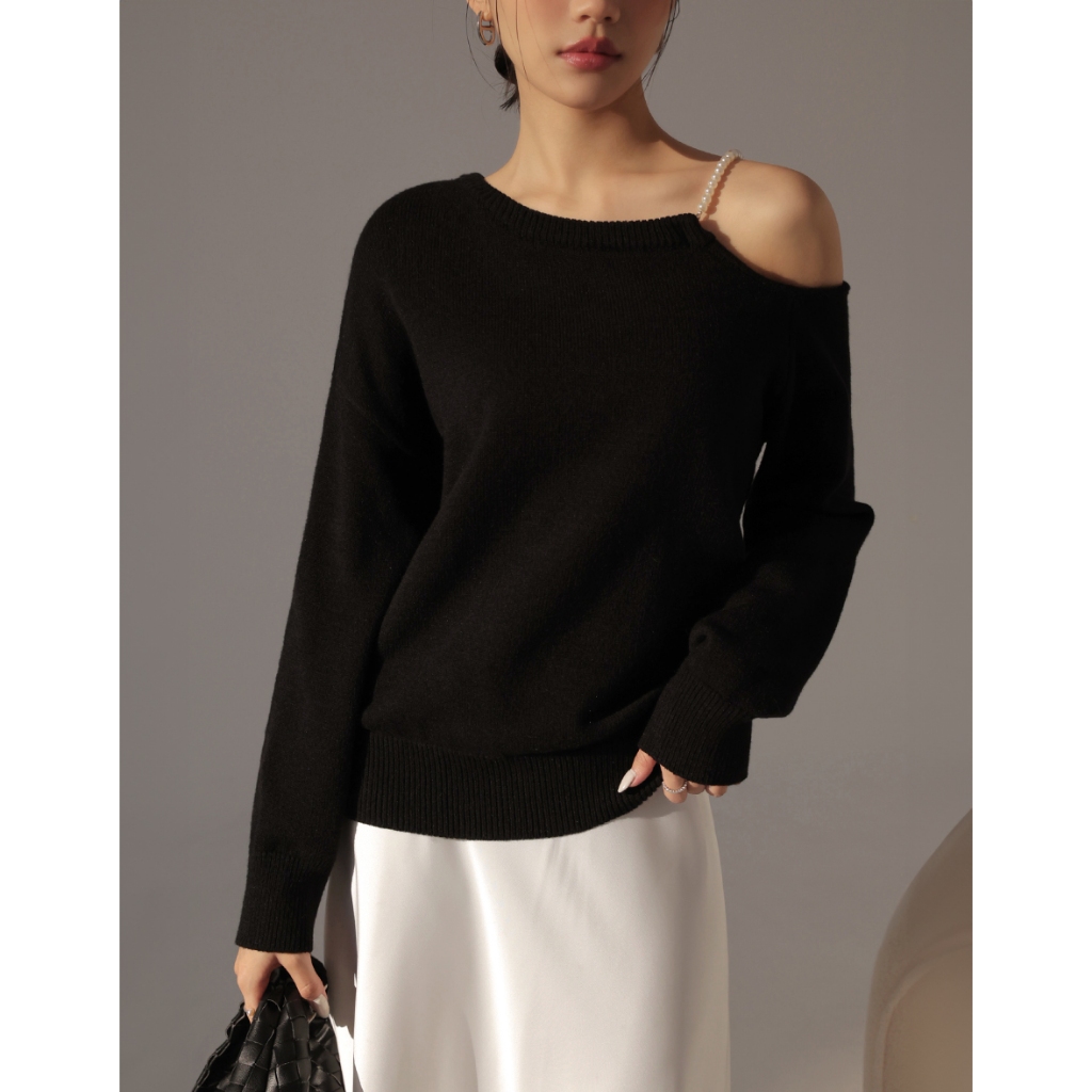 CHIC A SPACE 輕奢珍珠鍊挖肩針織上衣(黑/紅) 女裝 現貨黑,S|黑,M|紅,S|紅,MAIR SPACE