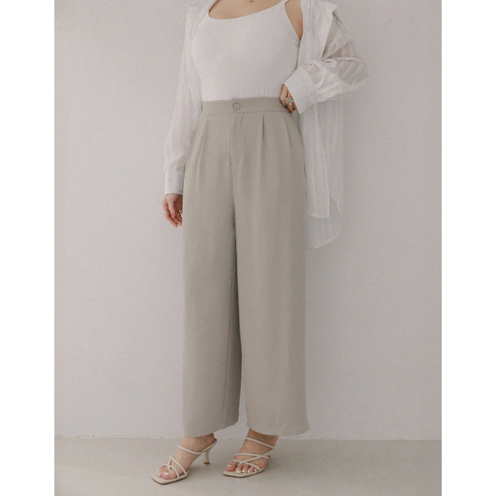 AIR SPACE PLUS 涼感打褶直筒寬褲(黑/杏/灰) 女裝 現貨 大尺碼 中大尺碼