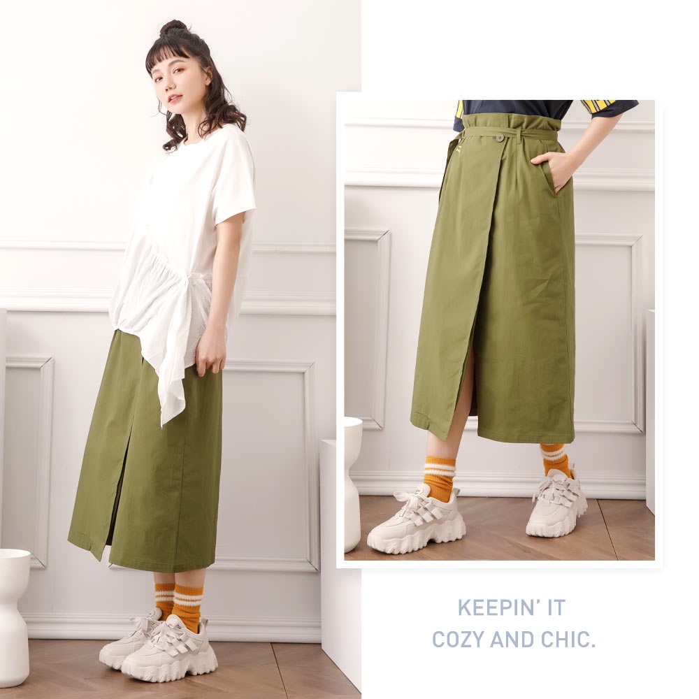 betty’s貝蒂思(05)下擺開岔扣飾長裙(軍綠)軍綠,M|軍綠,Lbetty’s貝蒂思