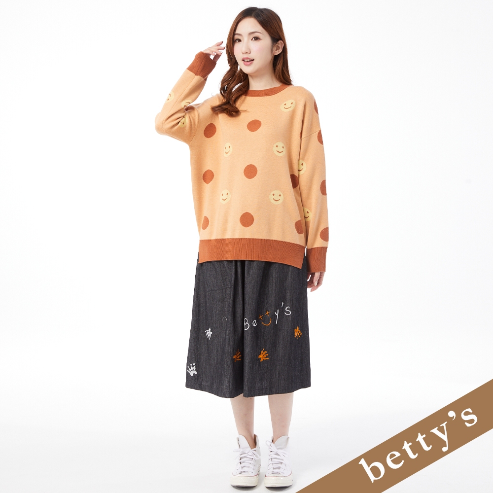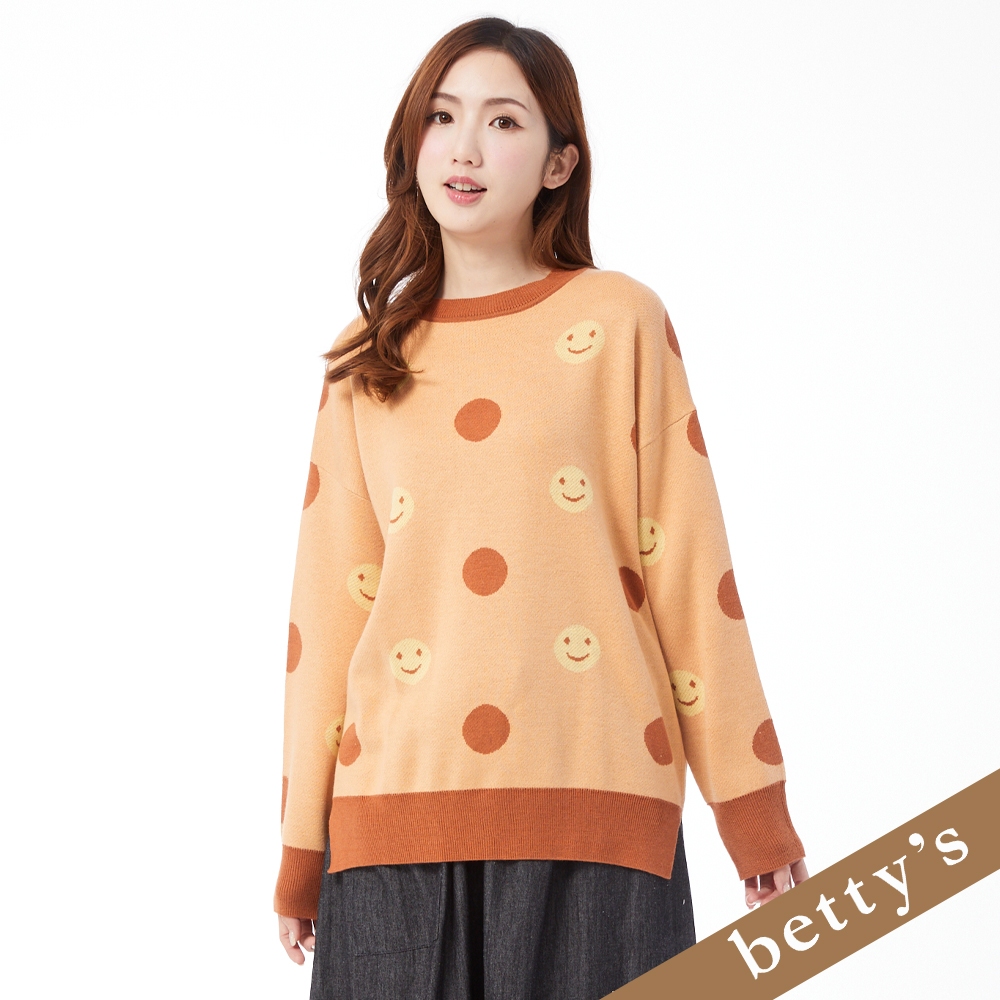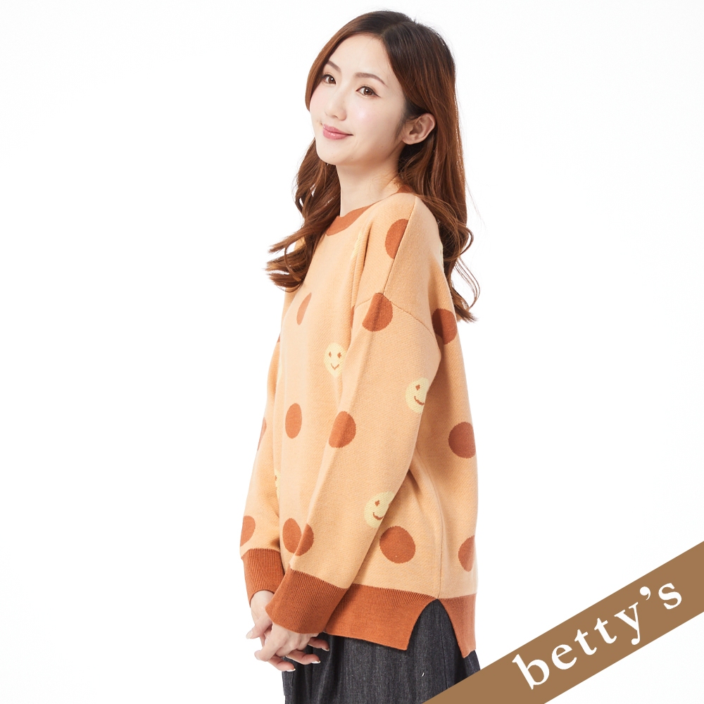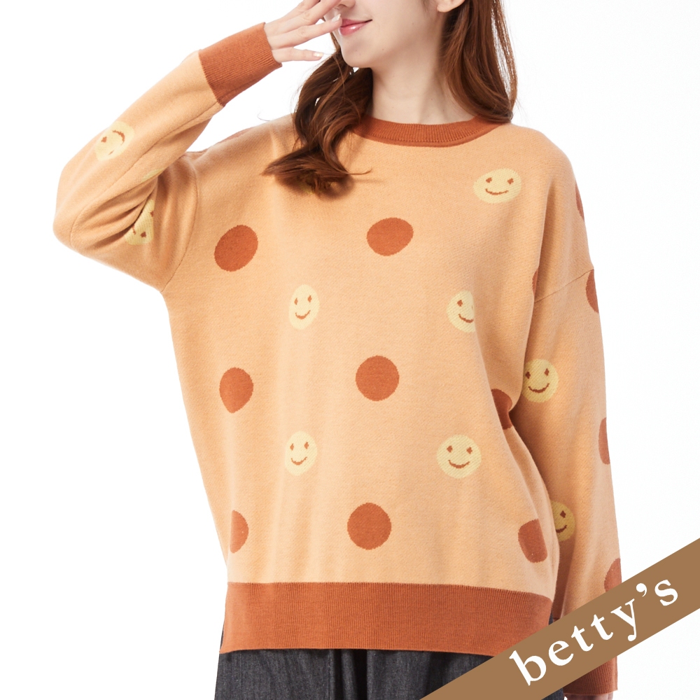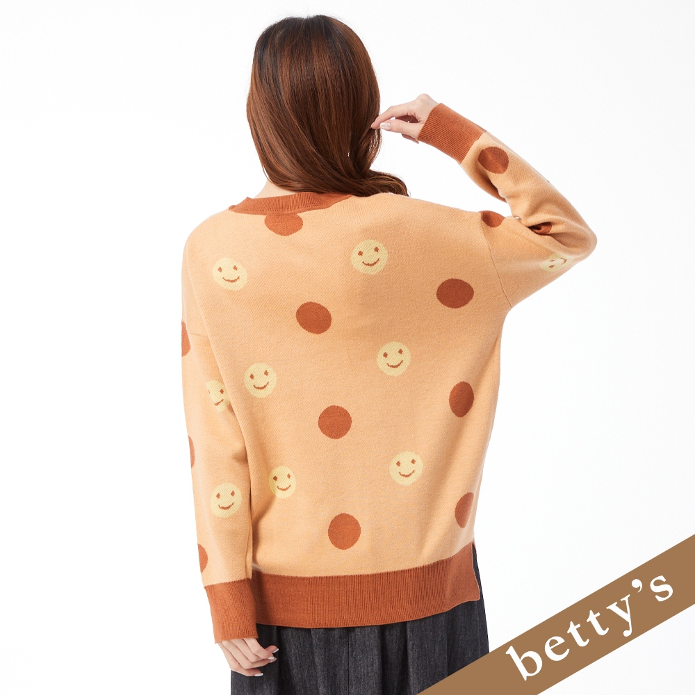 betty’s貝蒂思(25)撞色點點笑臉針織毛衣(25)卡其色,M|卡其色,Lbetty’s貝蒂思