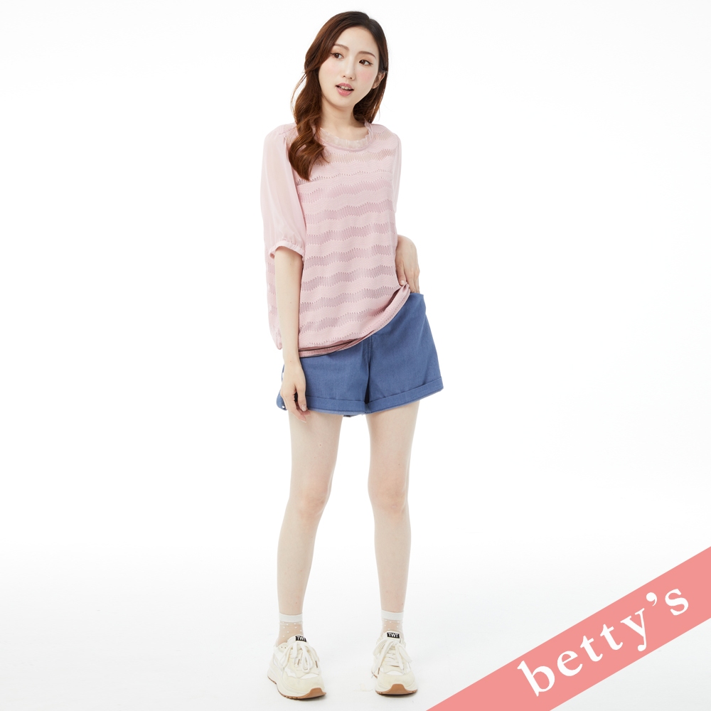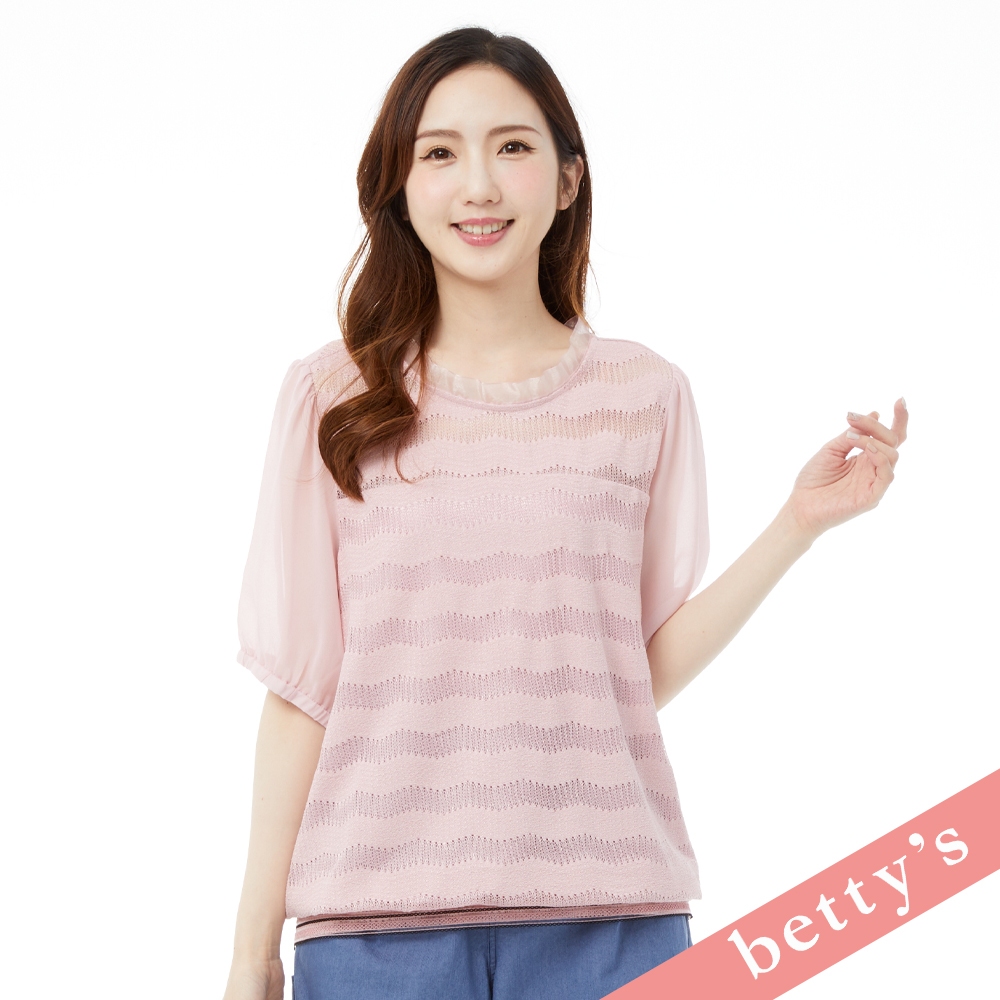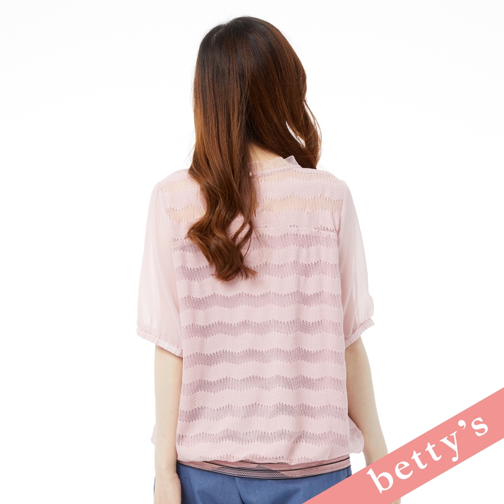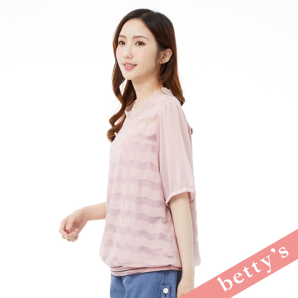betty’s貝蒂思(31)蕾絲雪紡小立領短袖上衣(粉色)粉色,M|粉色,L|粉色,XLT-shirtsbetty’s貝蒂思