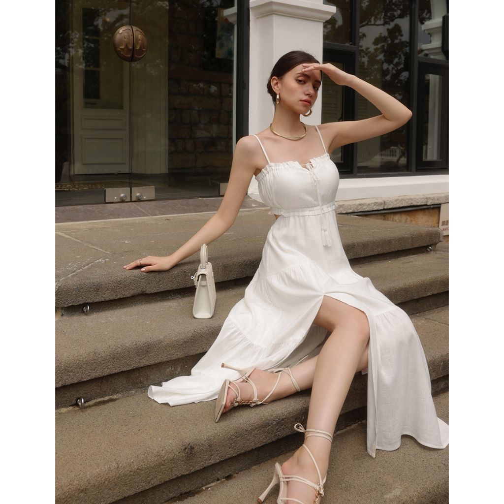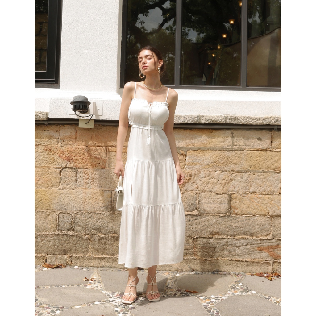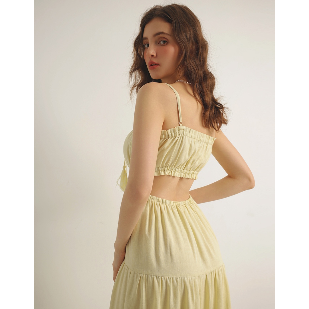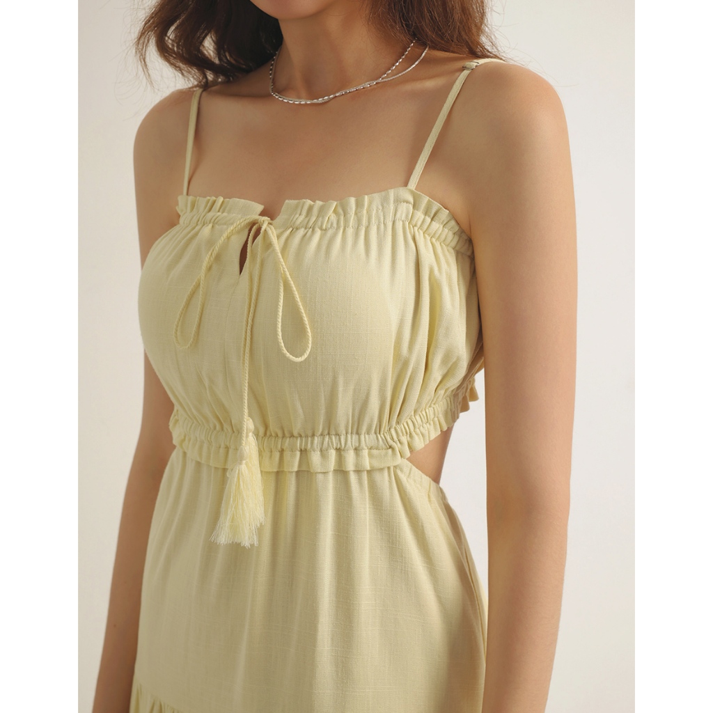 AIR SPACE 流蘇綁帶側開衩露背細肩帶長洋裝(附胸墊)(白/黃) 女裝 現貨白,S|白,M|白,L|黃,S|黃,M|黃,LAIR SPACE